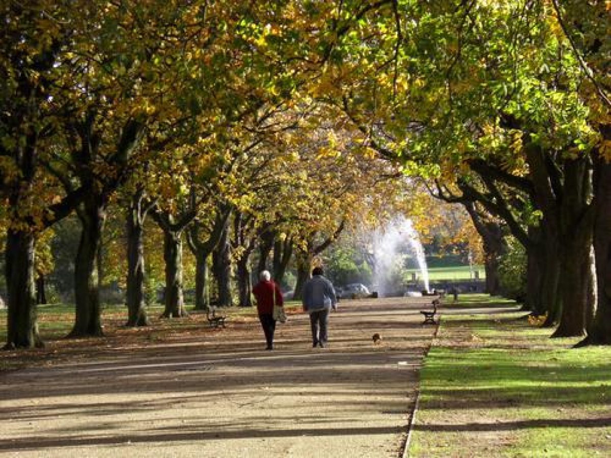 The Walk continues eastwards as East Walk, which is also lined with horse chestnuts, as it was in 1881 (Moorsom 1997). At the eastern end of the Walk steps lead down to the shore of Lower Lake. There are views of the lake with the largest of its islands along most of the length of East Walk. South Walk is planted with a C20 avenue of ornamental cherry trees and North Walk is flanked by planting which includes some cherries. The North and South Walks were called the Italian Gardens in the C19 and were planted with floral bedding backed by a screen of shrubs and trees. An intricate pattern of beds is shown on the 1868 plan alongside the Walks. A sinuous perimeter path links the axial paths, much as shown on the 1868 plan, apart from the section along the north-east quadrant which follows a fairly straight route, as shown on the 1875 plan. The area between this path and the park wall is shown thickly planted on the C19 plans and OS maps. The planting is now represented by scattered trees at various stages of maturity, and some areas of thicker planting, including a row of Turkey oaks along the perimeter path in the north-east quadrant.