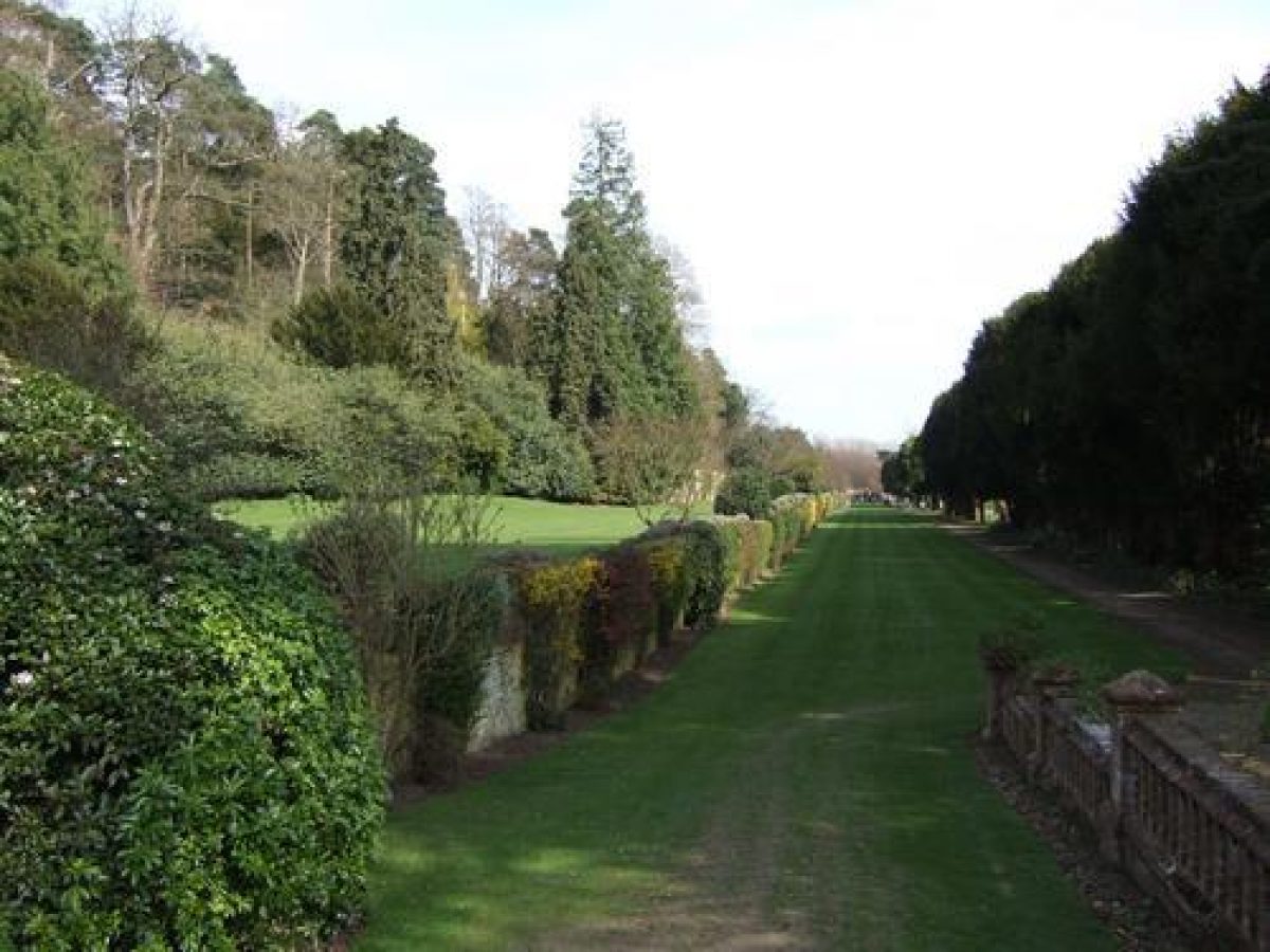 On the north side of the house, lawns with gravel paths run down to the Tilling Bourne. On the east side they are separated from the parkland by a brick ha-ha. A C20 timber bridge crosses a stream channel which is fringed with waterside plants. Between it and a second, more northerly stream channel, which runs in parallel, is an area of specimen trees planted by Henry Drummond in 1819 as a wilderness. This was the site of Evelyn's canal, now gone. To the north of the second stream, crossed by another timber bridge, is a grassed area of rising ground, subdivided by hedges with some specimen trees. The OS 1st edition map published in 1872 shows the west side with meandering paths, the gardens being illustrated and described in a series of photographs taken for Country Life (1928).