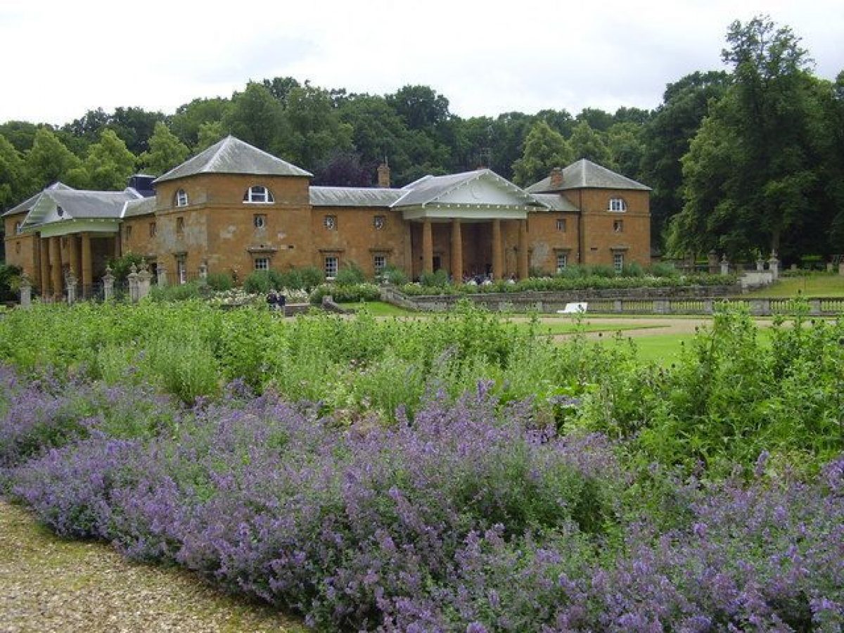 The south forecourt is entered by tree-lined drives from the north-east and south-west. At the end of the former, which curves around the base of Shepherd's Hill on the line suggested by Henry Holland's plan of 1790 (see below), are the East Lodges (listed grade II), a pair of single-storey limestone ashlar buildings of c 1810 linked by iron piers, screens and gates. The West, or Brington, Lodges, at the end of a 600m long, straight drive, are single-storey ironstone buildings 'of the most basic cottage Palladian' (Mowl and Earnshaw 1985, 29) connected by iron gates on rusticated stone piers (all listed grade II). They are of c 1730 and presumably by Roger Morris (d 1749).