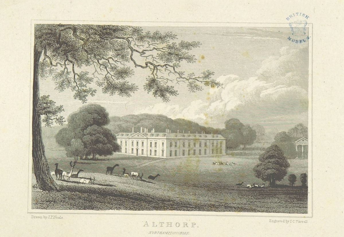 - Description: Althorp is a 16th-century house remodelled between 1786 and 1790 and refaced with white bricks. The original red-brick house had a courtyard but the building is now U-plan. Further work was carried out during the 1870s.