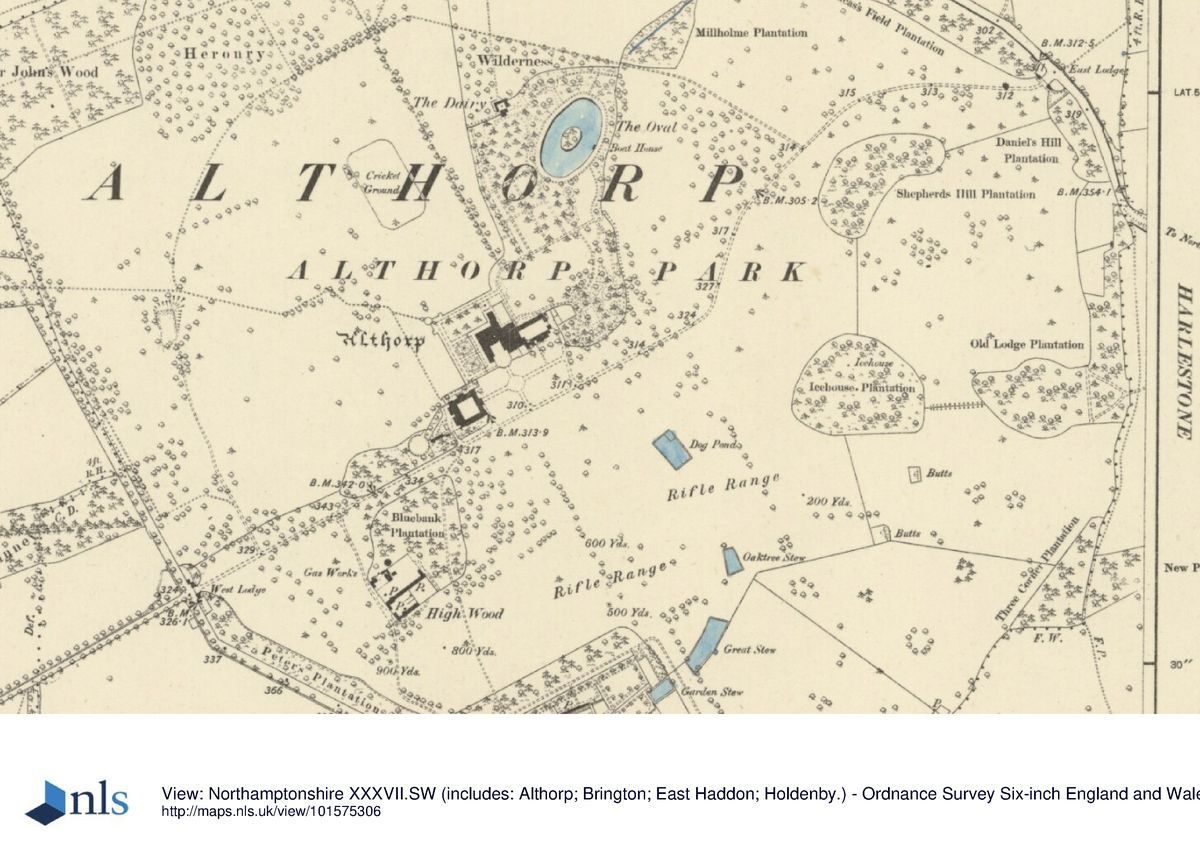 Althorp is a 19th-century landscape park with traces of an earlier formal layout and 20th-century gardens. The park covers about 225 hectares within a 5600-hectare agricultural estate. Gardens and landscape park with buildings and features of the C16 through to the late C20 associated with a country house.