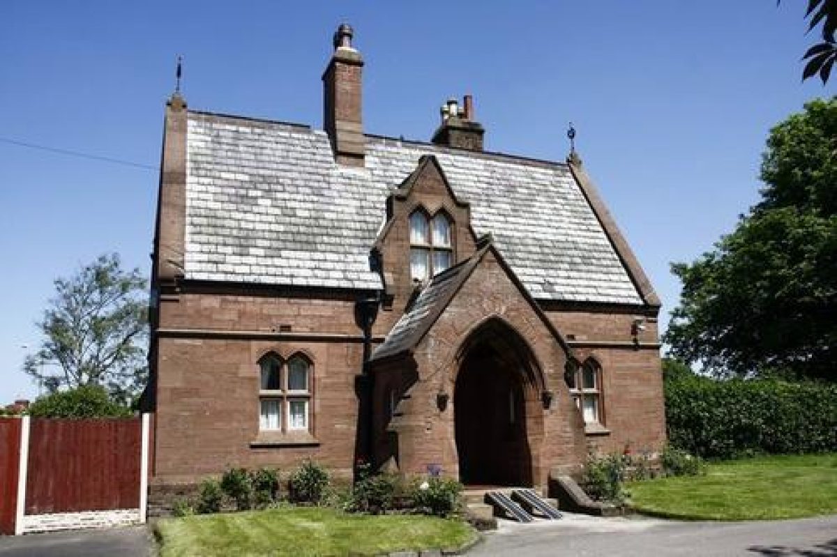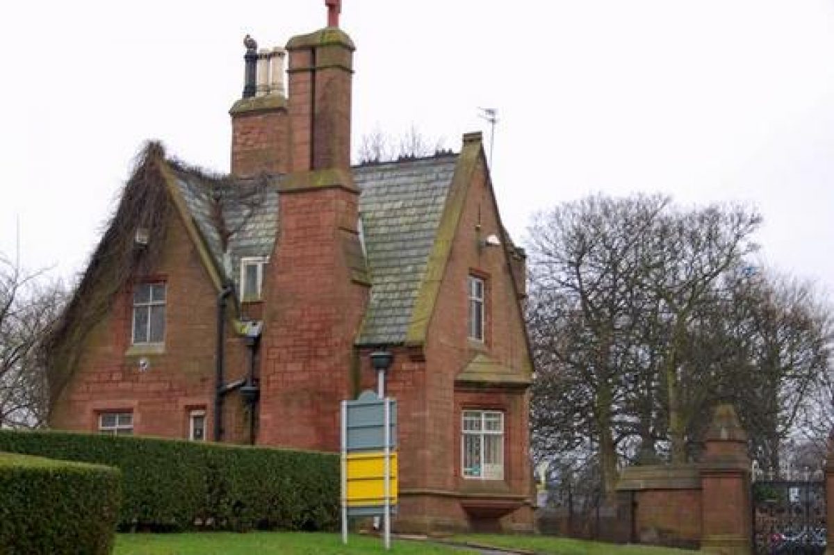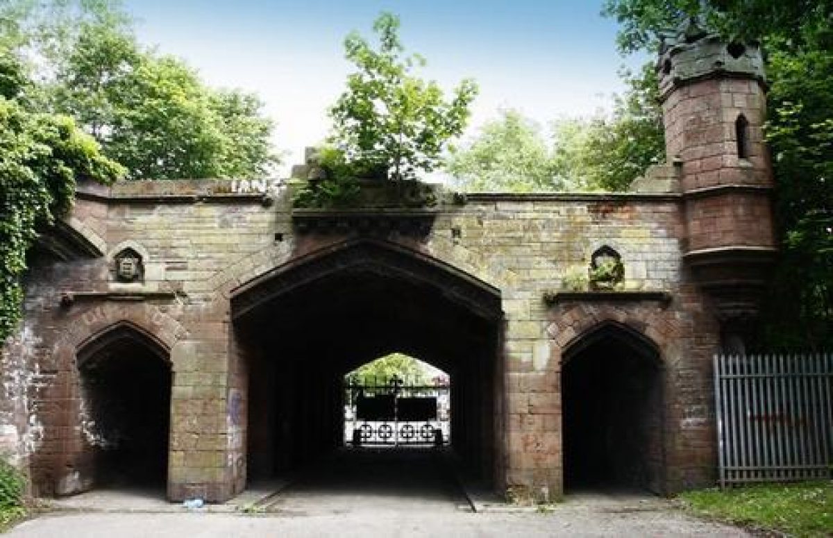 - Description: The main entrance is situated on the corner of Priory Road and Walton Lane and consists of a pair of stone lodges and a screen with ornate cast-iron gates on either side of a tall clock tower.