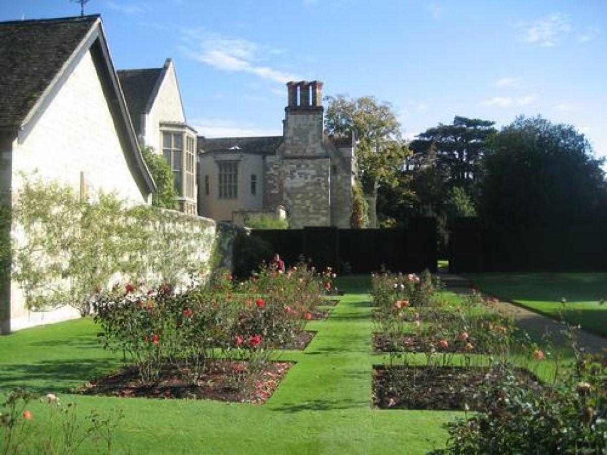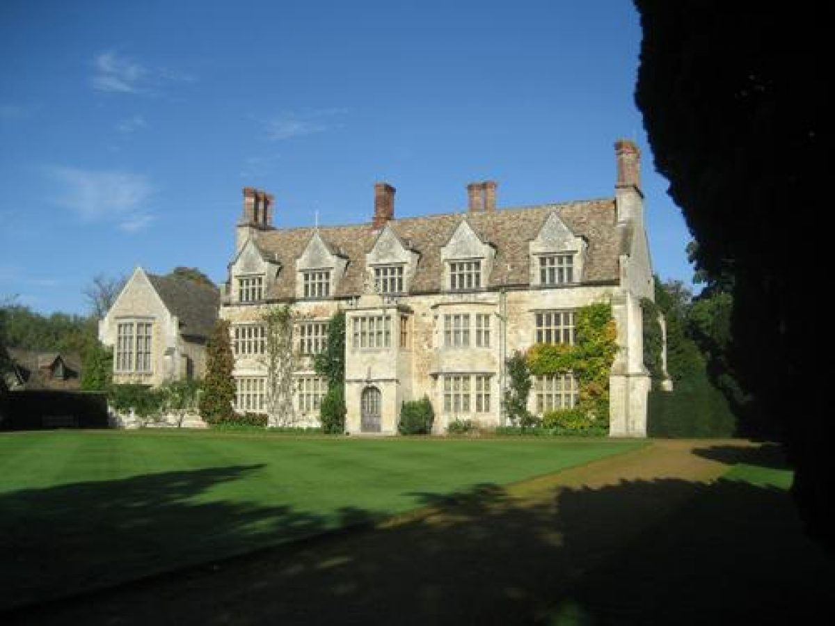 The level site lies surrounded by the flat, open Cambridgeshire fenland landscape.The enclosed gardens are set around the house and feature a wide selection of planting. The Rose garden features simple rectangular beds and contains a sundial dating from 1788 added by Lord Fairhaven. From the rose garden is a double avenue of alternating crab apples and cherries crossed by another avenue of the same trees with a Rond-point leading to the hyacinth garden.