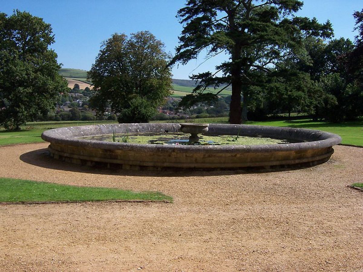 The east front of the house overlooks a broad, gravelled walk and a fairly open lawn framed by trees. A stone fountain basin, also part of the early C19 improvements, stands some 15m from the east front, on its central axis. In front of this ‘Irregular-shaped little parterres' mentioned in 1834 have since gone. Further serpentine walks criss-cross the garden, the more major ones linking the house with the Outer Park via further gateways, in the south-east corner, in the middle of the western boundary and beside the lodge. It is possible that two cedars of Lebanon (Cedrus libani), the Douglas fir (Pseudotsuga menzesii) and some of the beech (Fagus sylvatica) and possibly the Rhododendron ponticum planted here may also date from the early C19.
