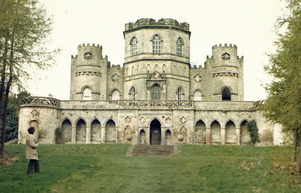 There is some evidence in the character of the masonry to suggest that it was built in two stages, with the flanking turrets possibly being later additions. The Temple is shown on the 1761 map standing at the head (north-west end) of a rectangular area marked Coney Garth, a clearing with avenues on each side apart from the north-west side behind the Temple. The avenue on the south-west side survives as a vista through the trees, the only survivor of axial paths or vistas shown extending into Crow Wood from each side of Coney Garth.