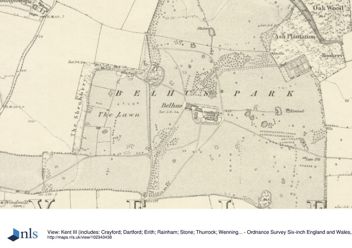 After Dacre's death the Belhus estate was inherited by his natural son, Thomas Lennard (created baronet in 1801) who was friendly with Humphry Repton (1752-1818). Although there is no evidence in the estate account books of payment to Repton, Belhus is illustrated in Peacock's Polite Repository for 1807, suggesting that Repton may have given some advice there. Comparison between Chapman and Andre (1777) and the Ordnance Survey Surveyor's drawings (1799) shows that the avenue flanking the main approach had disappeared by the later date, with just a length of it retained beyond the house.