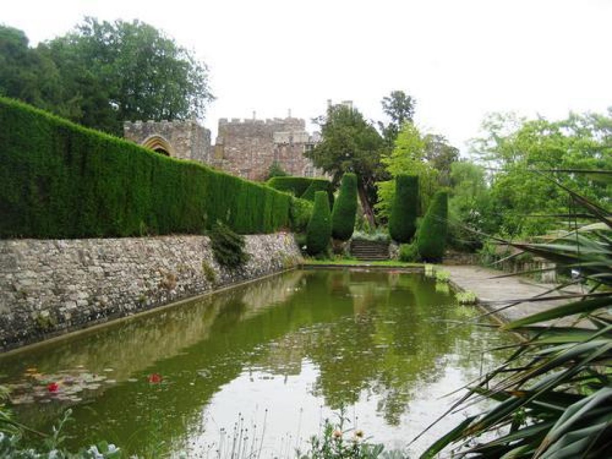 Medieval castle with terraced gardens of 17th- to 20th-century date, adjoining Home Park, and Whitcliff deer park one kilometre to south-west.