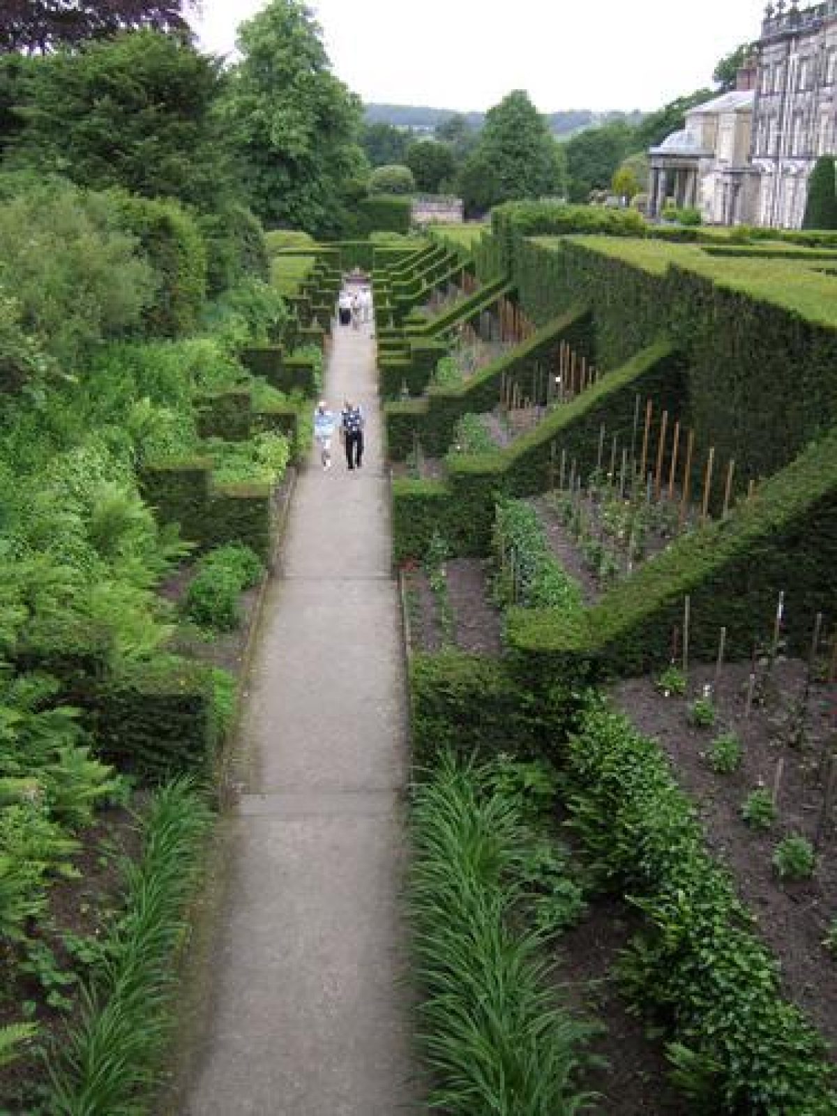 - Description: A massive tazza set in a clipped yew-hedged square.