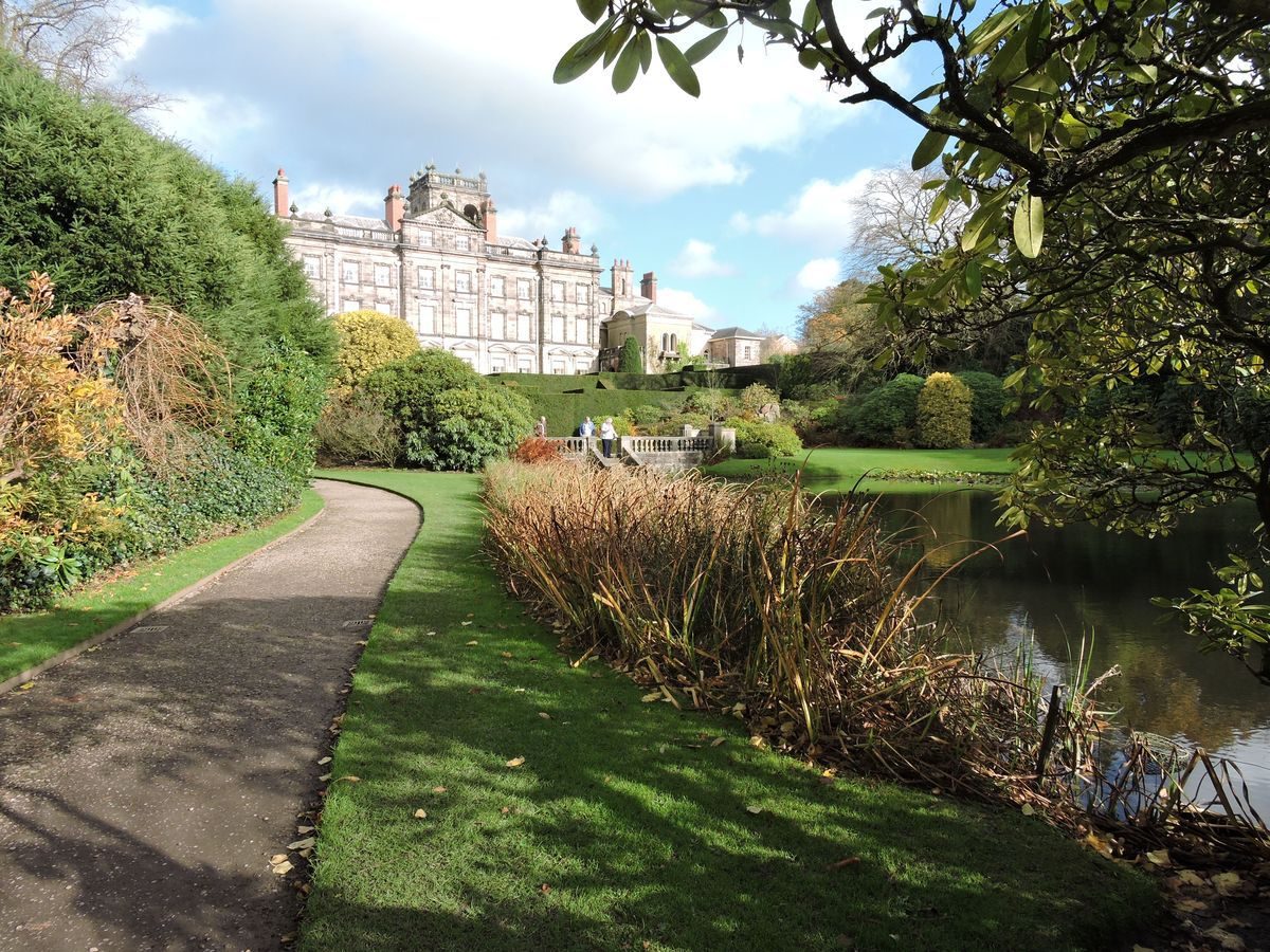 The main gardens and pleasure grounds lie south of the house, where terraces overlook a lake and the well-wooded gardens which surround it on three sides. South of the east end of the terraces is the series of garden tableaux which together create what has been called a world image garden, in which plants from other countries are evoked amid an extraordinary collection of garden buildings and microclimates. While the main framework of the whole garden, including the terraces to the south of the house, was laid out by the Batemans before 1849, and although James Bateman was responsible for most of the planting, its architectural features were probably all designed by Edward Cooke.