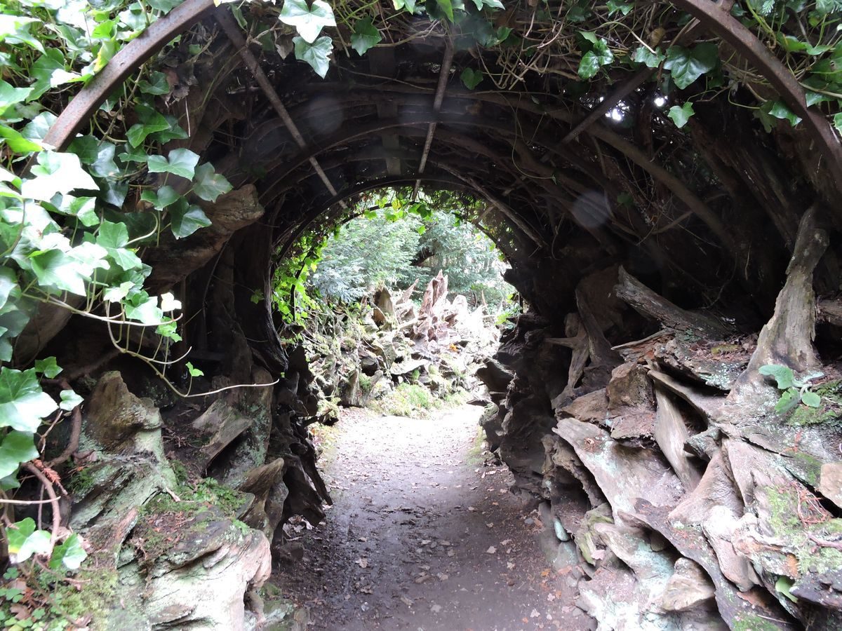 - Description: The Stumpery, a sunken path bordered by stump work.