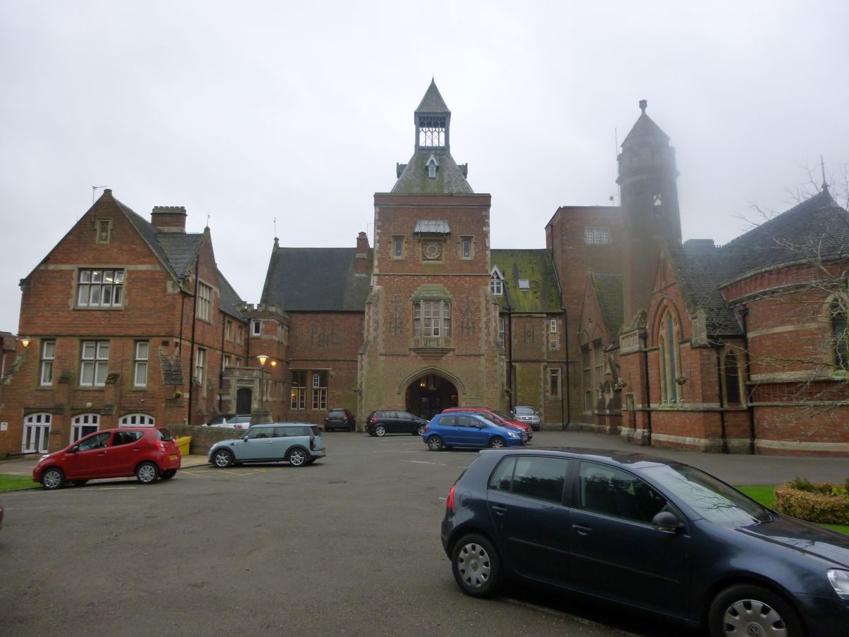 Today (1999) the site is approached from the A426 Rugby Road at its junction with Northampton Lane, c 400m north-west of the house. The entrance is flanked by low, late C20 reconstituted stone wing walls, and a two-storey lodge (listed grade II), dated 1883 and constructed in pale brick, stands within the site to the north of the drive. The mid C19 estate gas works which stood to the north-east of the lodge (sale particulars, 1861) do not survive. The tarmac drive passes south-east for c 130m through an avenue of limes, before reaching a small, late C19 red-brick inner lodge (not shown on the 1886 OS 6" map; listed grade II). The field to the south of the drive and outside the site here registered has (1999) permission for housing development. The inner lodge marks the boundary of the western park, and the point at which the drive is crossed by the public footpath which runs north from Dunchurch. The drive continues through an avenue of limes for c 160m to reach the mid C19 stable court and mid and late C20 school buildings and sports facilities which lie to the west of the house. The present drive was constructed in the late C19 by John Lancaster, and replaced an earlier approach from the north. This drive, which is shown on the OS 1" map (1834), left the A426 road at the south-west end of Cock Robin Plantation, c 400m north-west of the house, and swept east and south across the northern park. Some 260m north-east of the house the drive entered an avenue of limes which was planted prior to 1855 (plan annexed to indenture of that date). The lime avenue runs c 700m north-east across the park to North Lodge (listed grade II), a two-storey, brick, gabled structure which was built after 1861, possibly to designs by E W Pugin for John Lancaster, and which gives access to the site from the B4429 Ashlawn Road. The drive running through the avenue, today (1999) a grassy track, was created after 1861. Both the early C19 drive and the mid C19 drive turn south-west and pass through a pair of brick and stone gate piers (listed grade II) designed by A W N Pugin to enter the 'shrubbery avenue' (sale particulars, 1861), which today survives as evergreen shrubbery and mature trees. The shrubbery frames a vista of the tower, porte-cochère and front door, which are aligned on the axis of the avenue. The walled forecourt with entrance gates to the north shown in sale particulars of 1861 was replaced c 1890 when the school chapel was built to the west, and a classroom block to the east; the north side of the forecourt was left open. Today (1999) the forecourt is used for car parking and the semicircular lawn below the entrance tower shown in 1861 has been removed.