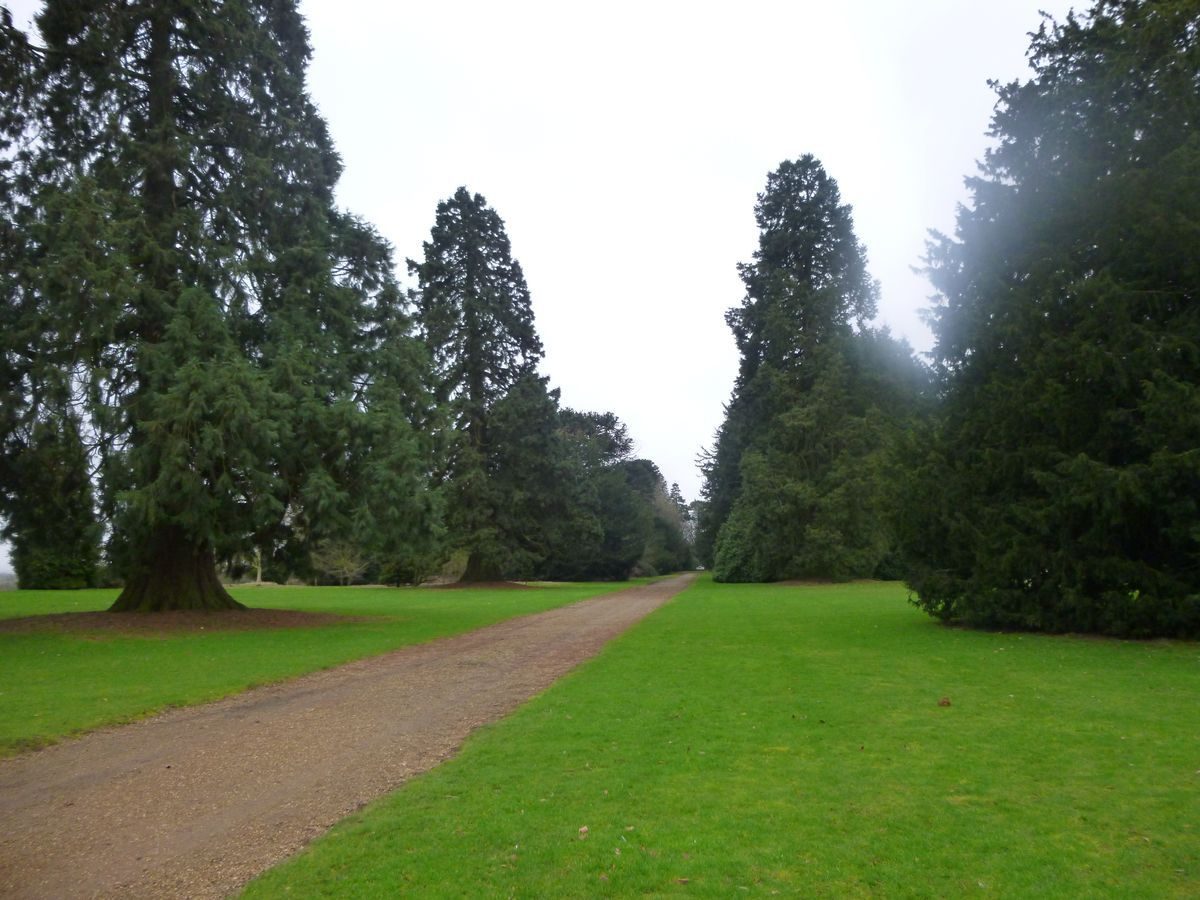 Aligned on the door on the south facade leading from the Gallery, and projecting the axis of that room into the gardens, a straight walk extends southwards for c 100m across the lawns, and continues for c 190m as the central path through an avenue of monkey puzzles, which are planted on raised earth mounds and alternate with specimen yews. At the southern end of the avenue, beyond a late C20 painted timber seat, stands a single central monkey puzzle flanked by a pair of western hemlocks. A row of yews, at some date headed at c 2m, line a subsidiary path which runs parallel to the avenue on its east side. To the west, a similar path is lined by mature copper beech and a variety of specimen trees underplanted with holly and specimen shrubs. Walks leading south-west and south-east from the monkey puzzle avenue enter an area of winding paths which weave through a complex of undulating banks, on which are planted a variety of C19 and C20 ornamental trees, underplanted with laurel and a range of hollies. Parallel, and to the west of the beech walk and monkey puzzle avenue, forming the western boundary of the pleasure grounds, is a second north/south axial walk which is marked by an avenue of Deodar cedars. This walk is aligned to the north on the mid C19 conservatory to the west of the house. The line of the walk, but not the avenue trees, is shown on the 1861 sale plan, at which date the western boundary still had to assume its present straight line; both the boundary realignment and planting were completed by 1886 (OS). The southern extension of the pleasure grounds, including the avenues, post-dates 1855 (indenture plan) but was laid out within a framework of boundaries which had been established by that date, and which included a narrow plantation of oak along the southern boundary.