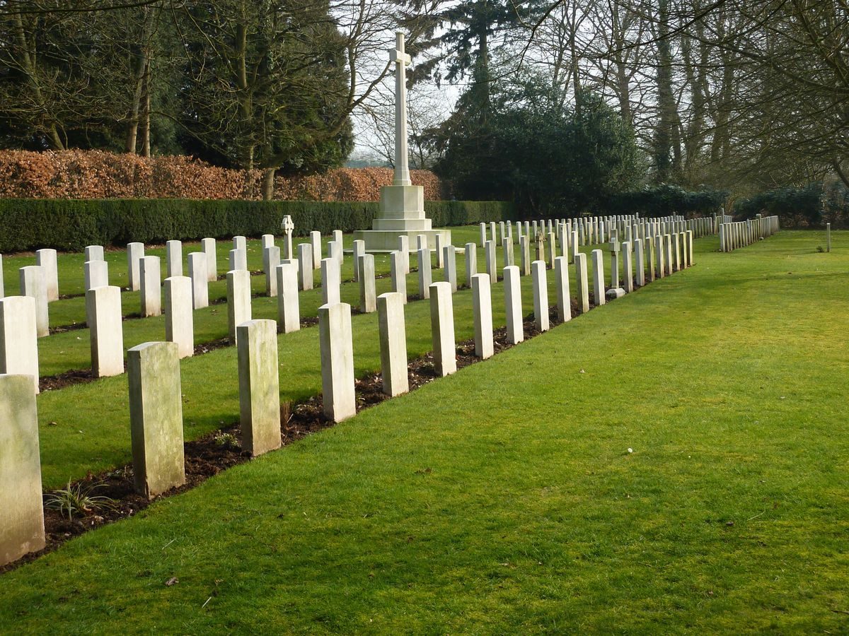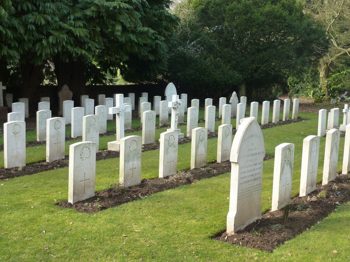 The first burials took place in Plot 1, part of the original churchyard, but this was then extended to include plots 2 and 3 with a war cross between the two plots. Inigo Triggs designed the extension and Reginald Blomfield the memorial cross. In 1920 another memorial cross was erected west of the church, designed by Inigo Triggs, to honour local men. After the end of WWI the government planted maple trees along the eastern boundary of Bramshott church to honour the Canadians who died.