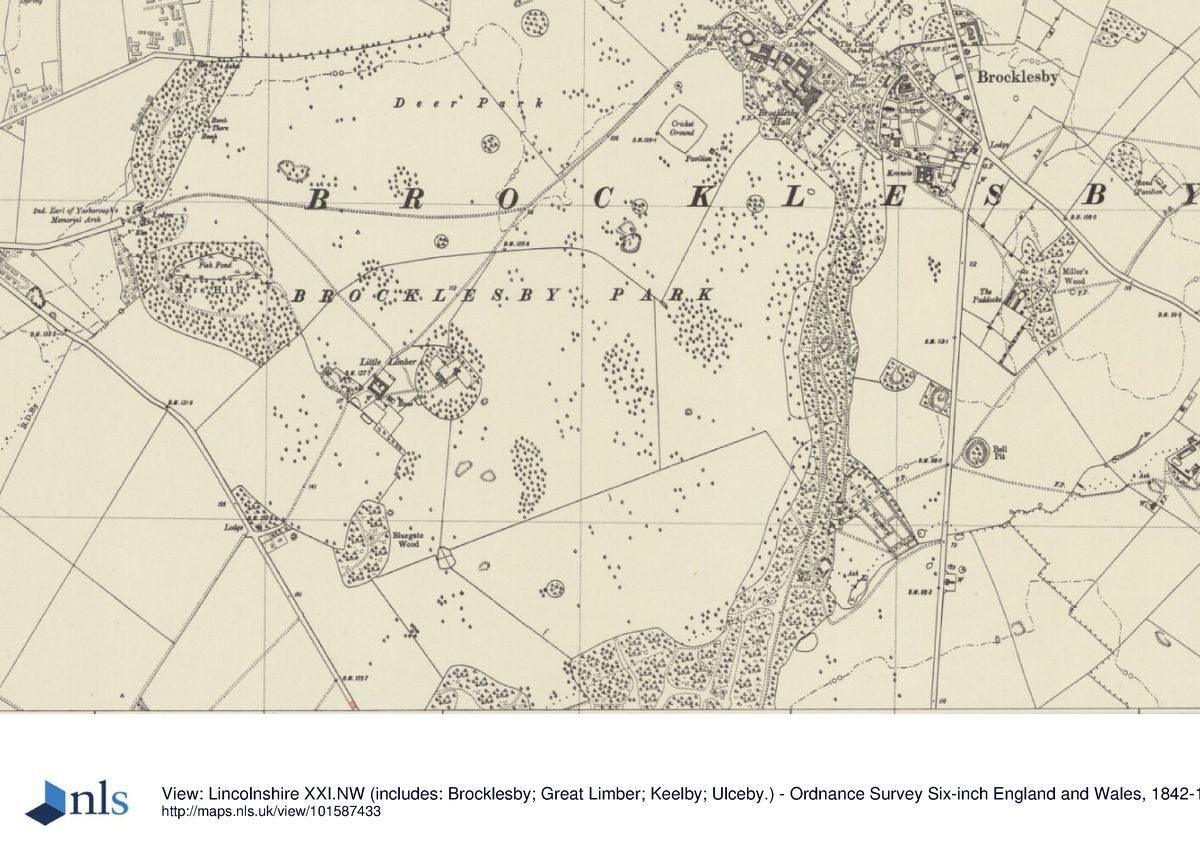 A serpentine circuit runs south from the pleasure grounds in front of the house through Mausoleum Woods, passing several temples and a grotto before reaching the Wyatt Mausoleum. Little Limber Lodge (early C19, listed grade II) lies c 1.2km south-west of the house, built of yellow brick with a pyramidal slate roof. The drive ran north-east through the village of Little Limber and then through open parkland to the south-east front. Newsham Lodge (early C19, possibly J Wyattville, listed grade II*) stands c 0.95km to the north-west of the house. East Lodge (late C18, listed grade II) marks the entrance to the pleasure grounds off the B1211, c 280m to the east of the house, the drive running west past North-East Lodge (C19, listed grade II) on the south side of the drive and Rectory Cottages (C19, listed grade II) on the north side.