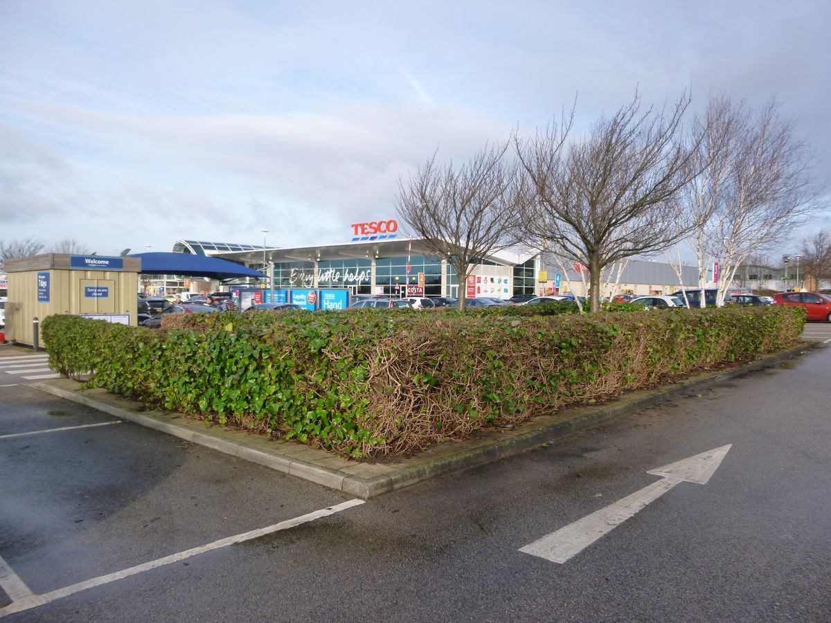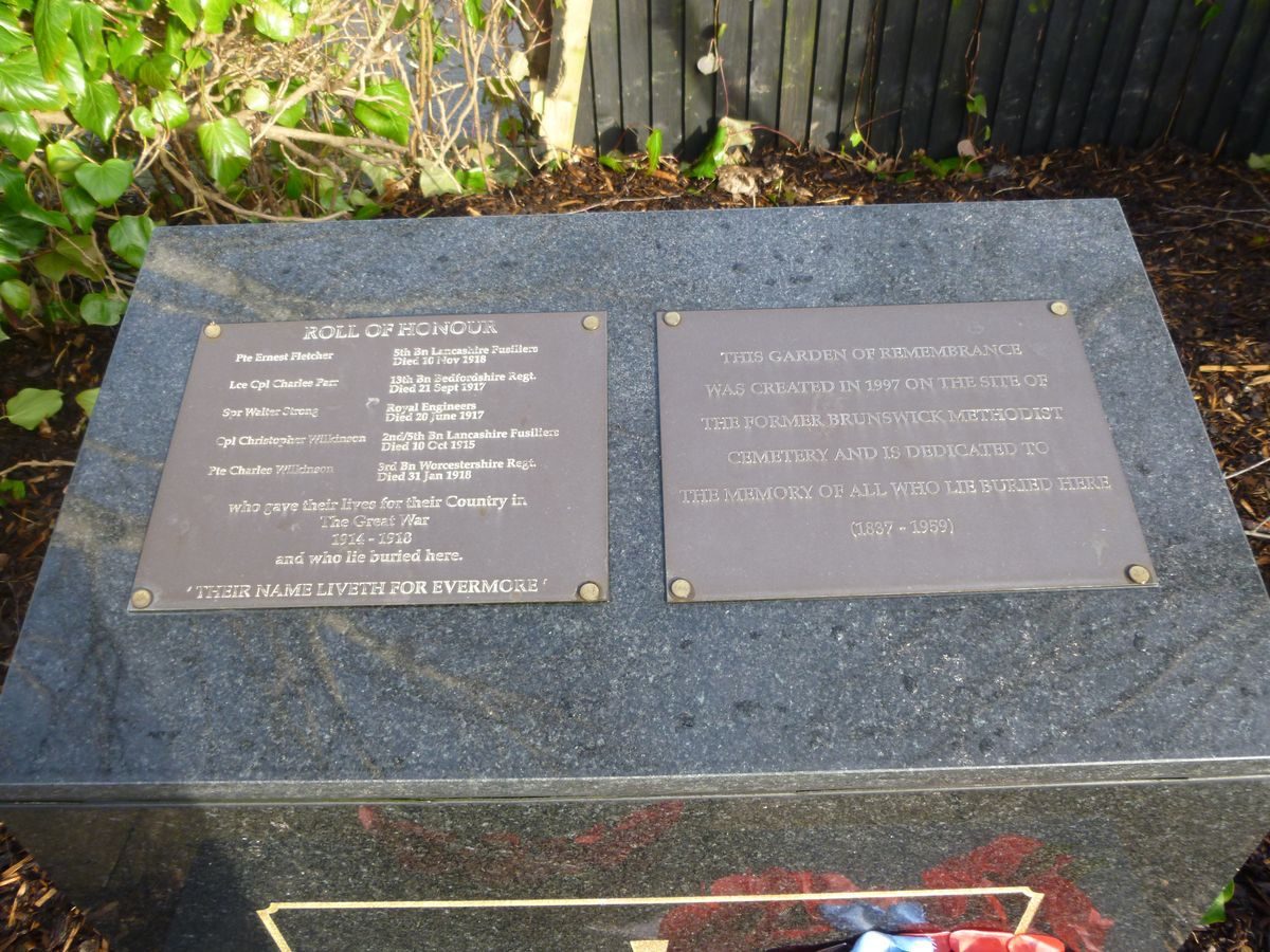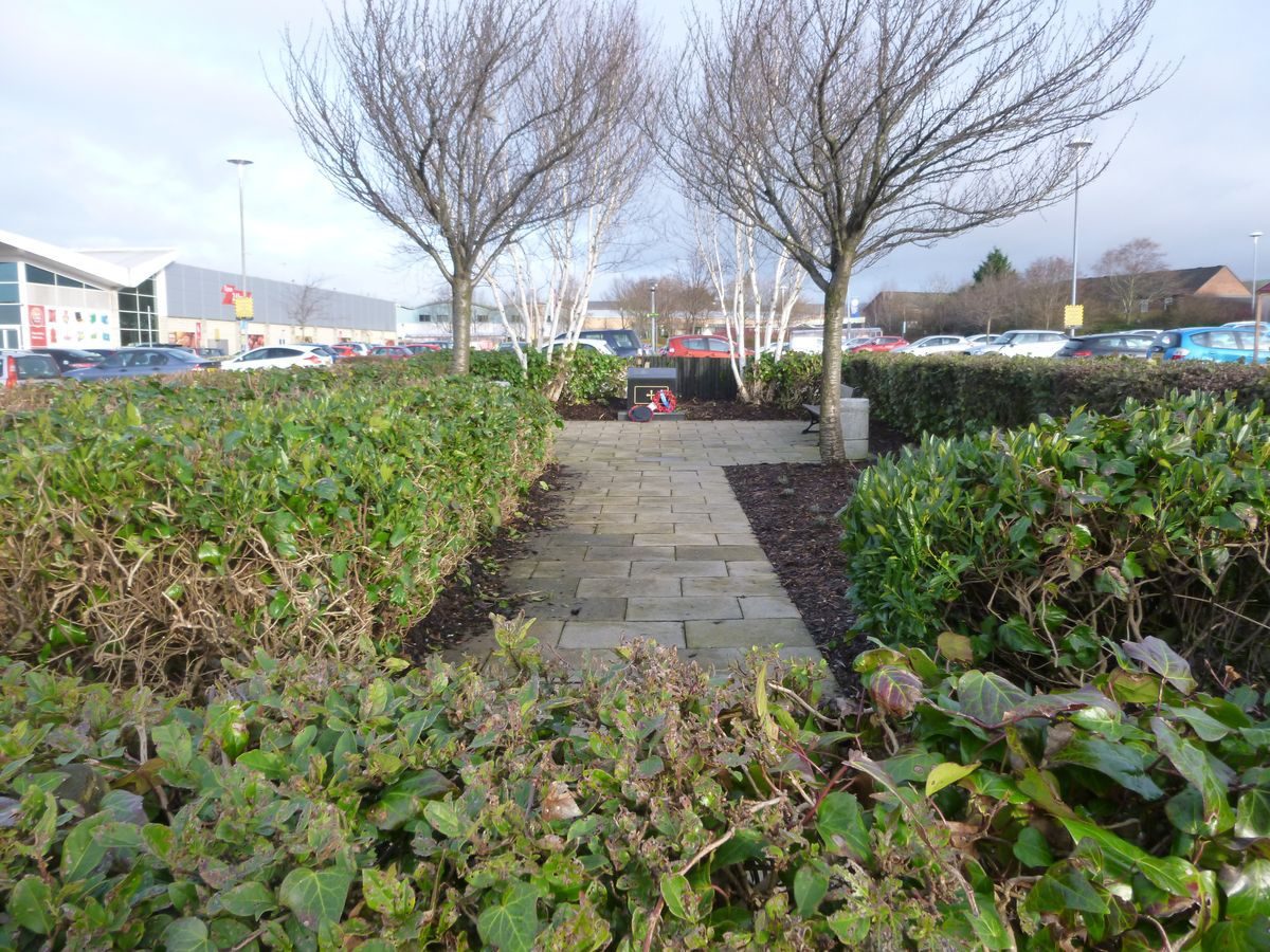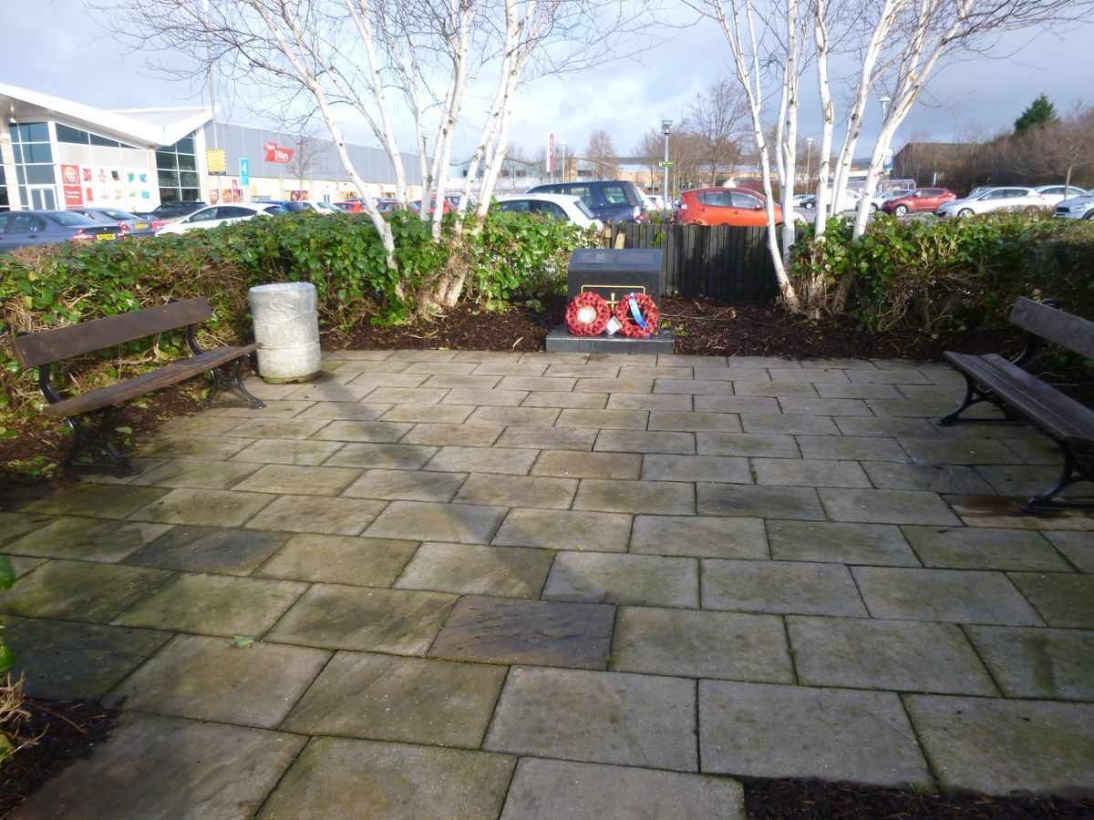 This memorial garden is situated in the middle of the supermarket car park and is easily missed unless actively looked for. It is not an imposing site but remains very poignant. There was previously a churchyard on the site, where a number of servicemen were buried. Features include seats, shrubs and a plaque.