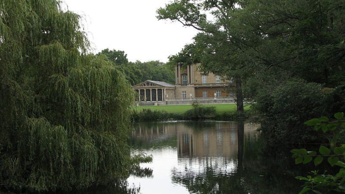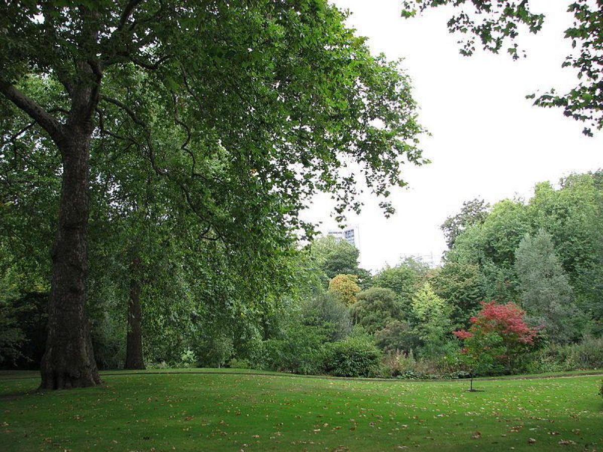 Best viewed from the West Terrace, the gardens and pleasure grounds, although screened from the outside world by high brick walls and mature trees (London plane being a dominant species), maintain an open appearance. A rolled gravel path runs around the perimeter of the site, while branches divert around lawns, island beds, and other features, largely reflecting William Townsend Aiton's layout of 1825.