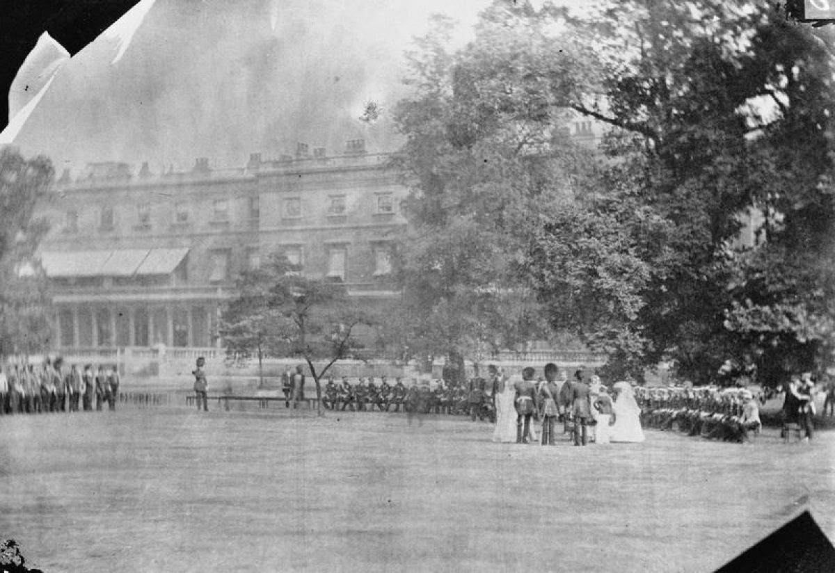 After the death of Victoria in 1901 the Palace was renovated and the Queen Victoria Memorial created to the east, the architect being Sir Aston Webb (1849-1930). The C19 framework of the garden was maintained, with additional trees and shrubs being planted and areas of bedding and borders made during subsequent years. The Palace was damaged in the Second World War but the royal family stayed in residence. Since the accession of Queen Elizabeth II in 1953, the gardens, while largely being retained for private use, have become a venue for regular large royal garden parties.