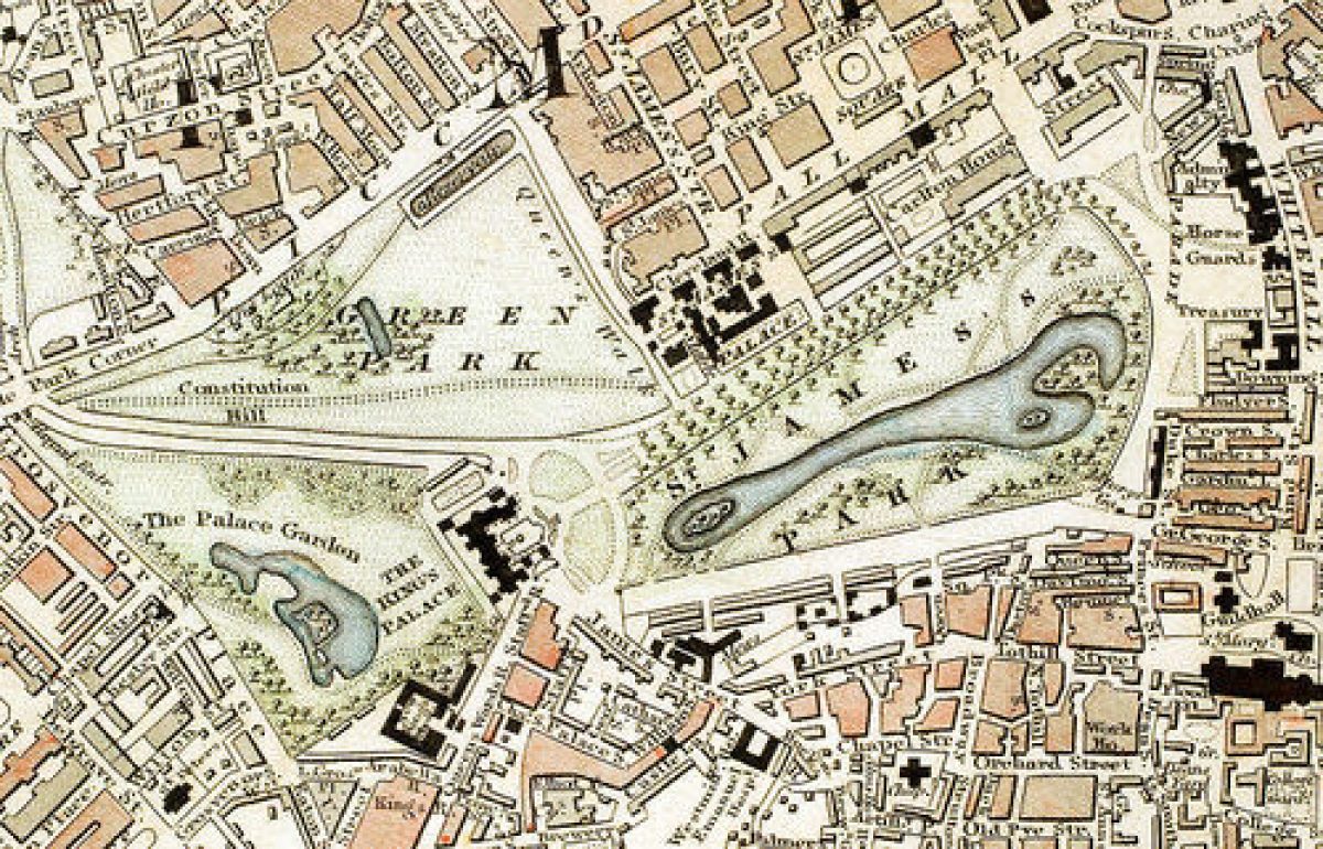 Brown's proposals for Queen Charlotte's grounds at Queen's House, now Buckingham Palace, c 1762 in the Royal Collection , accessed 10 May 2016 from https://www.royalcollection.or...