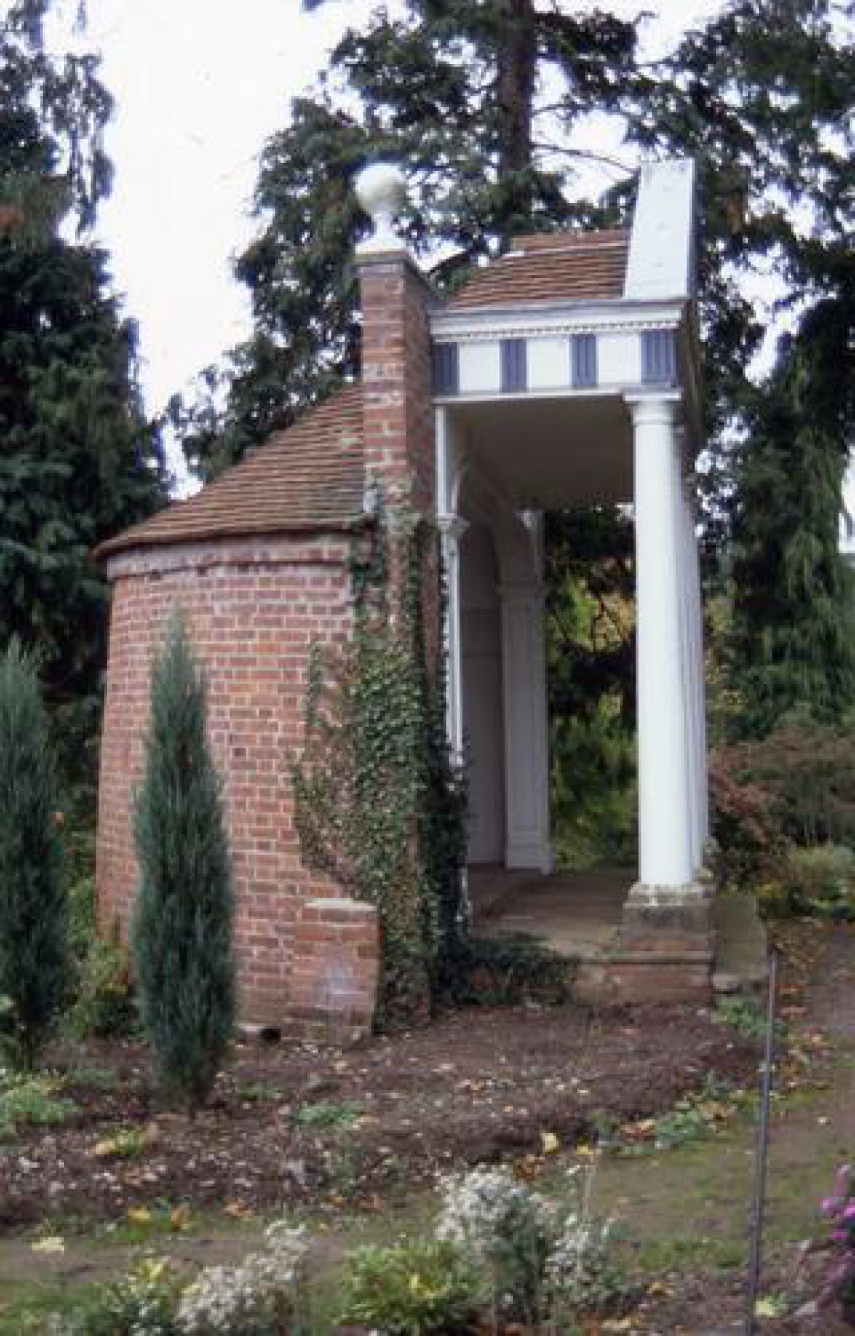 - Description: The garden house has a pediment of four Tuscan columns, with a wrought-iron grille featuring William Bowles' arms in the pediment (Pevnser 1974, 92).