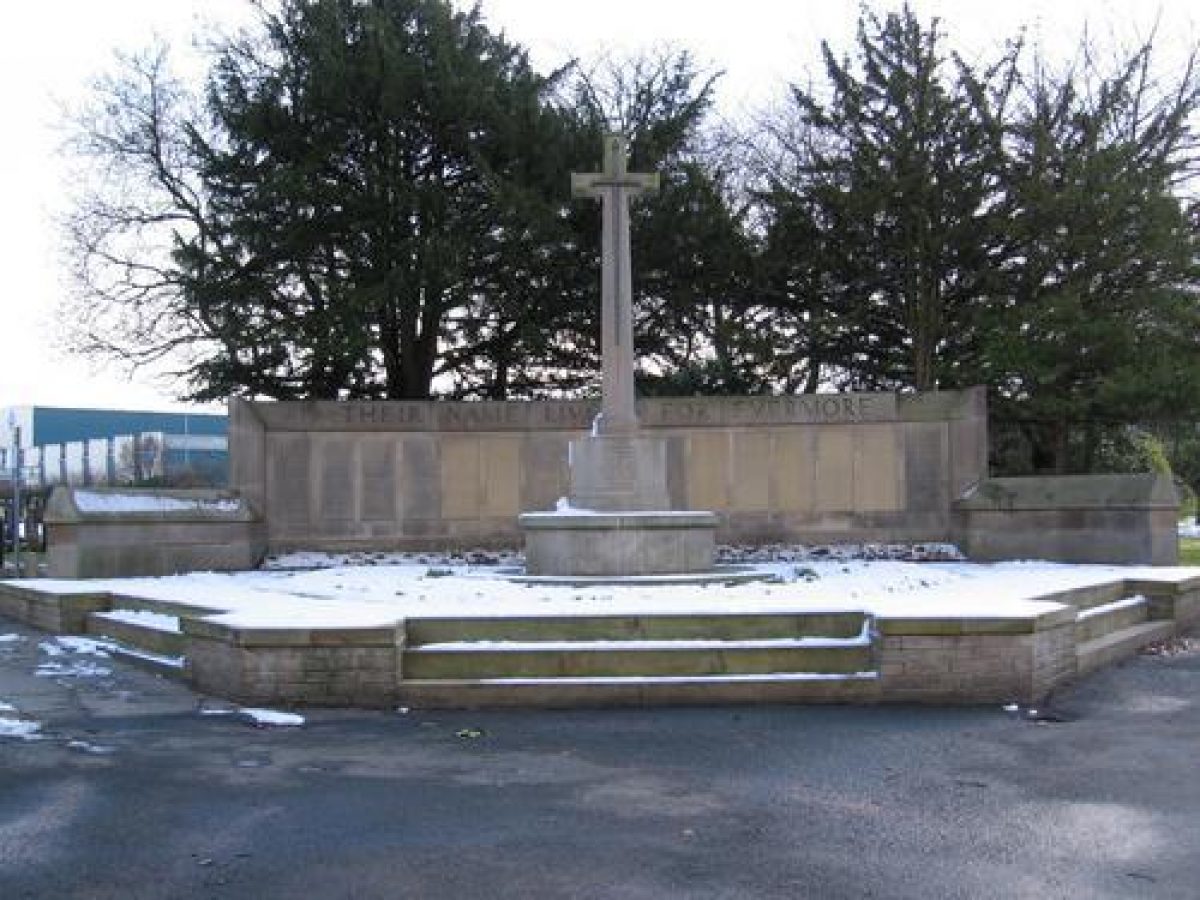 - Description: War Graves Commission Cross of Sacrifice surrounded by a wall of remembrance dedicated to those who lost their lives as a result of World War 1.