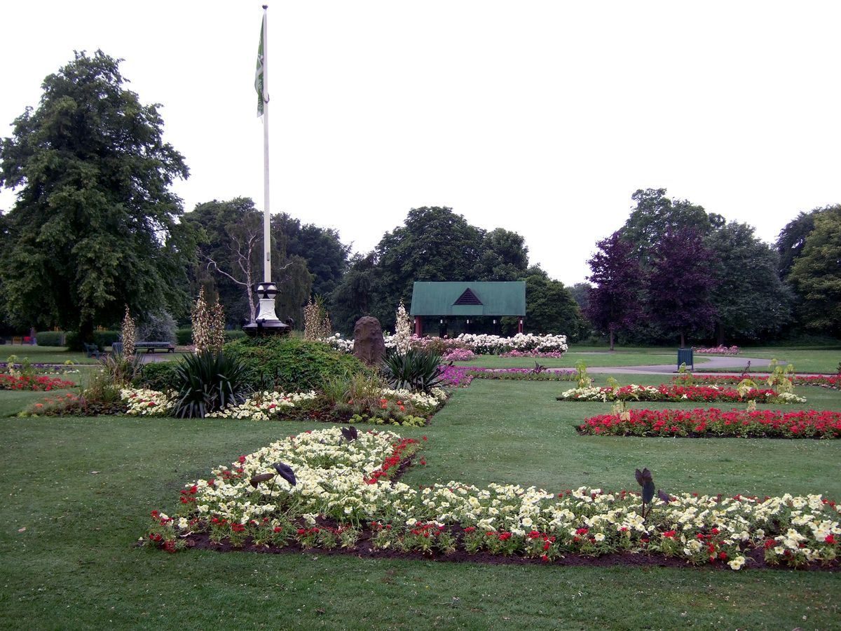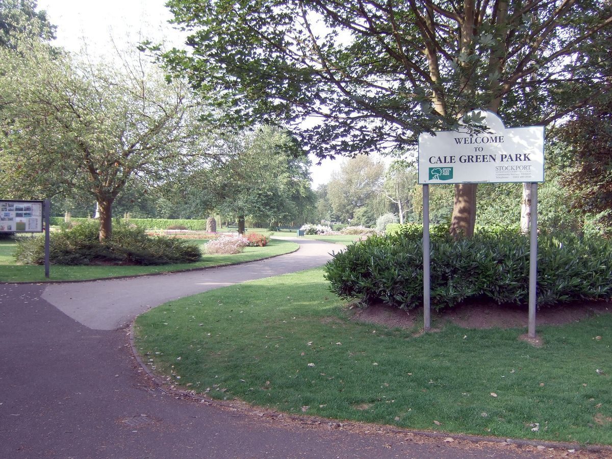 Cale Green Park is a public park developed this century on agricultural land. The site is bounded by a railway line to the south, Heath Road to the east and Beech Road to the north. It is associated with a cricket ground to the west. The site is roughly rectangular in shape, with a central circular feature and system of intersecting paths.