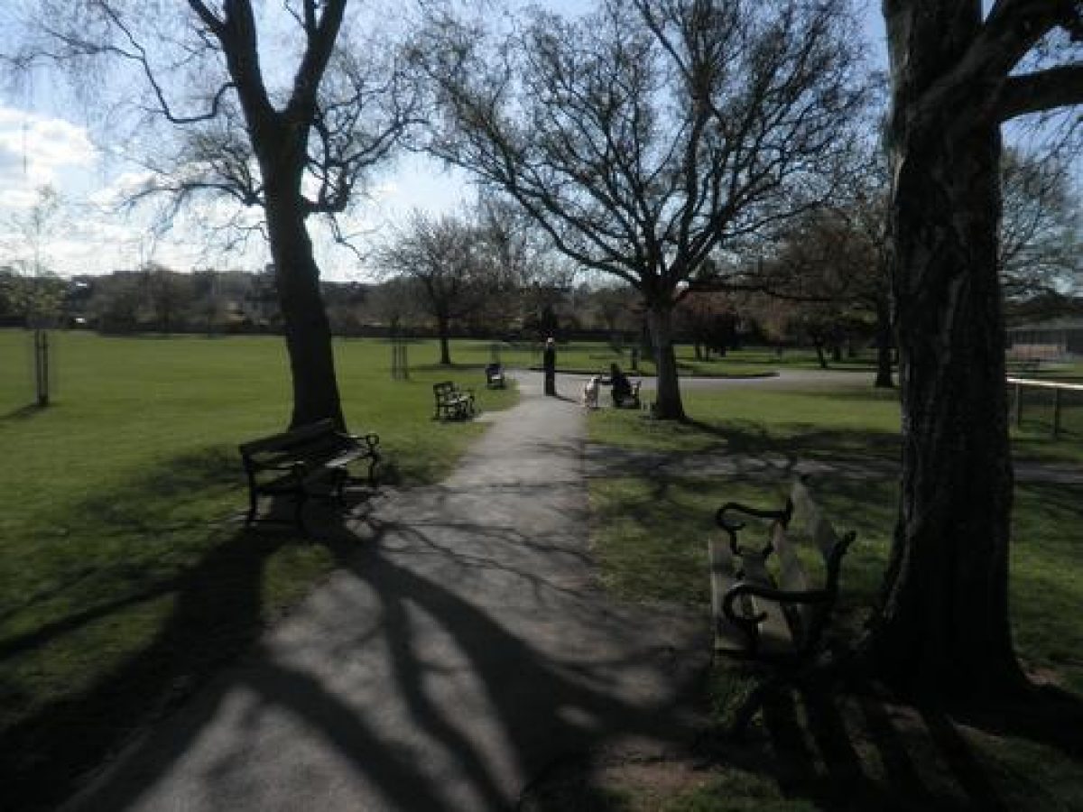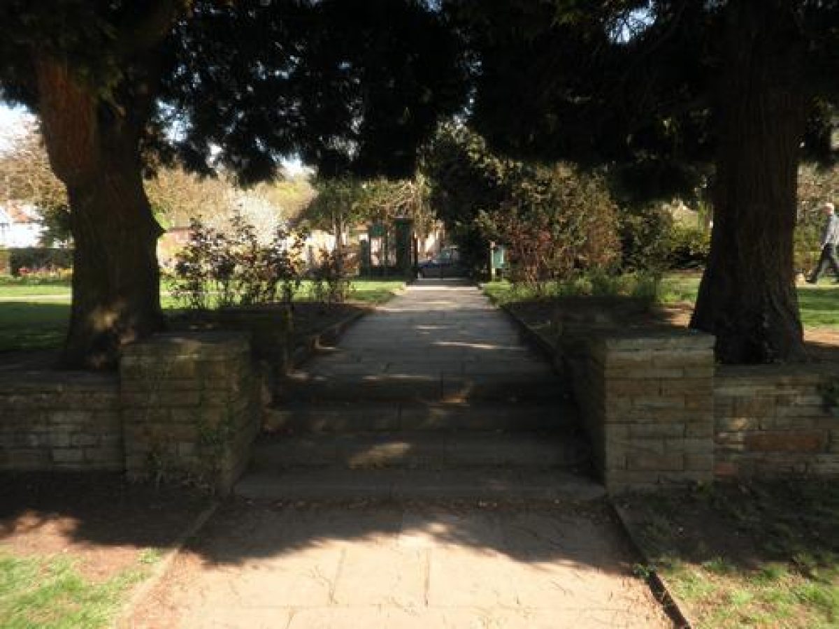 Features of this municipal park include a shrubbery, sunken garden with lily pond, flower beds and a bowling green. The park is bounded by a low stone wall.