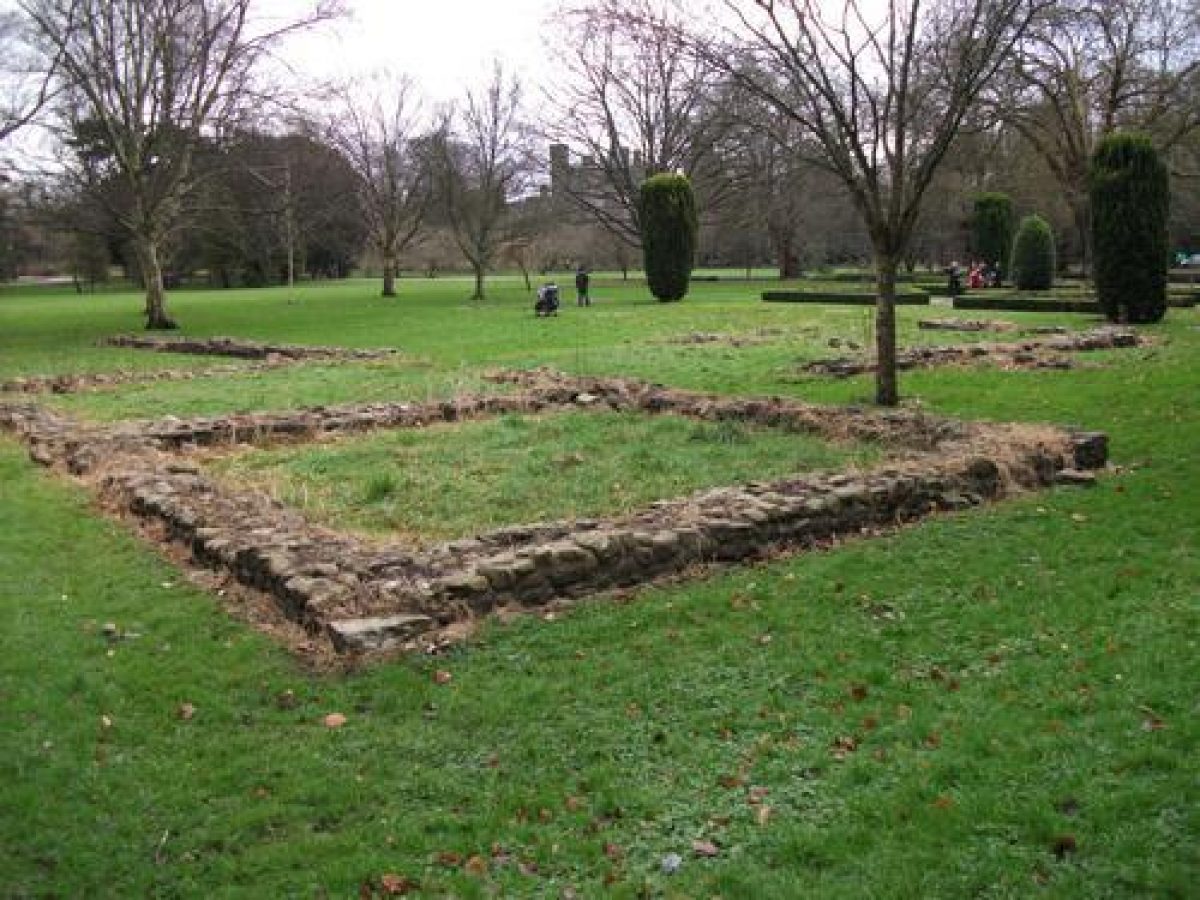 A ‘Gorsedd' stone circle is located on the right side of the main path close to where it forks. Both forks join the path from the North Gate close to the location of the former Black Friars Dominican friary. Here some more recent brick and stonework outline the locations of the historic structures. North and east of the Black Friars site is a large area of grass known as Cooper's Field which is used for annual bonfire and fireworks displays and a variety of other occasional functions including Royal Horticultural Shows.
