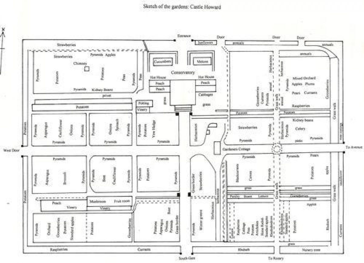 In the early 20th century a new conservatory costing £5,650 5s (Castle Howard Archives, F5/76), a new boiler room and chimney and 19 glasshouses were added to the garden. An early 20th-century plan (Castle Howard Archives) shows that the gardens layout had been simplified.