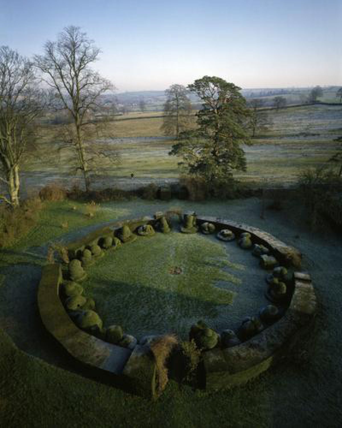 The Catesby family owned Chastleton House during the 16th century, it being in the possession of Robert Catesby by the end of the century. Catesby was murdered in 1605, following his conspiracy in the Gunpowder Plot, and around this time the property was bought by Walter Jones and the house demolished. In its place Jones built the present house, probably between 1607 and 1612, and is likely to have constructed the rectangular, walled garden compartments at this time or a little later. These compartments conform closely with Gervase Markham's prescription for garden layout in his The English Husbandman of 1613 (Inskip and Jenkins 1994). It is possible that the circular hedged feature in the Best Garden was laid out at this time, although subsequently it must have been replanted several times. The family was actively Royalist during the Civil War (at which time the Joneses were severely penalised financially, from which the family never fully recovered), celebrating the Restoration by planting two oak trees, and remaining Jacobite during much of the 18th century. Descendants of the Jones family continued in ownership until 1991 when the property was vested in the National Trust; it is now (1997) open to the public after six years of repair and restoration.