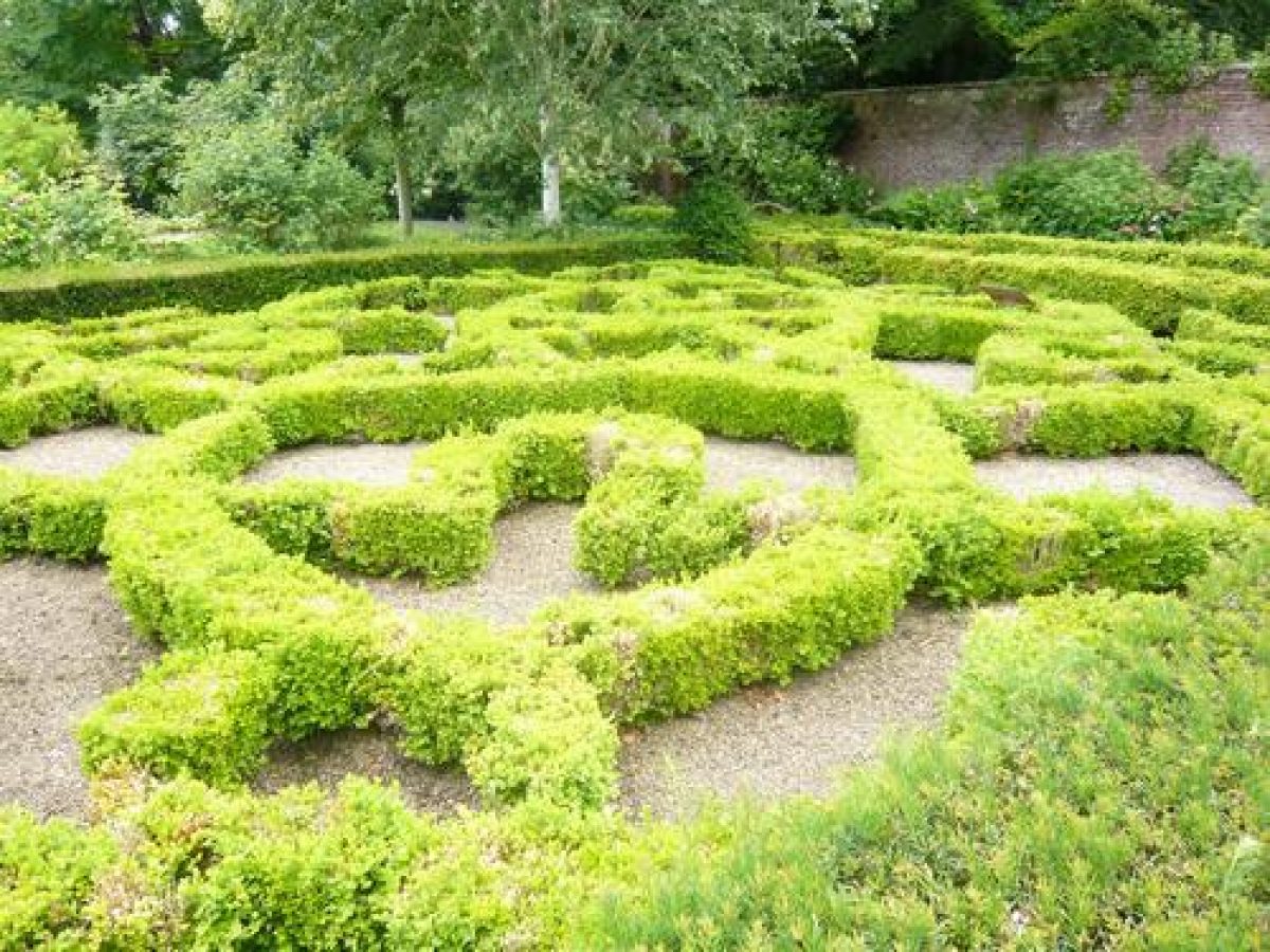 The knot garden was laid out to a design of 1617 by William Lawson. It is made of box plants that were taken as cuttings from the old hedges in the garden (White, 2008: 4).