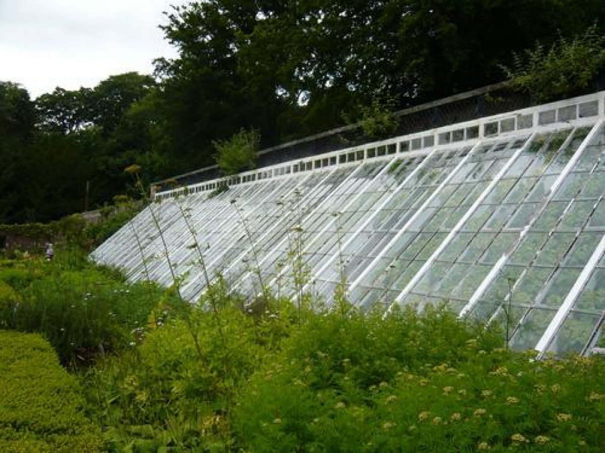 - Description: The glasshouse is located on the north wall. It was rebuilt by the estate joiner in the early 1980s. It is not heated but provides shelter for grapevines, peaches, nectarines and jasmine.