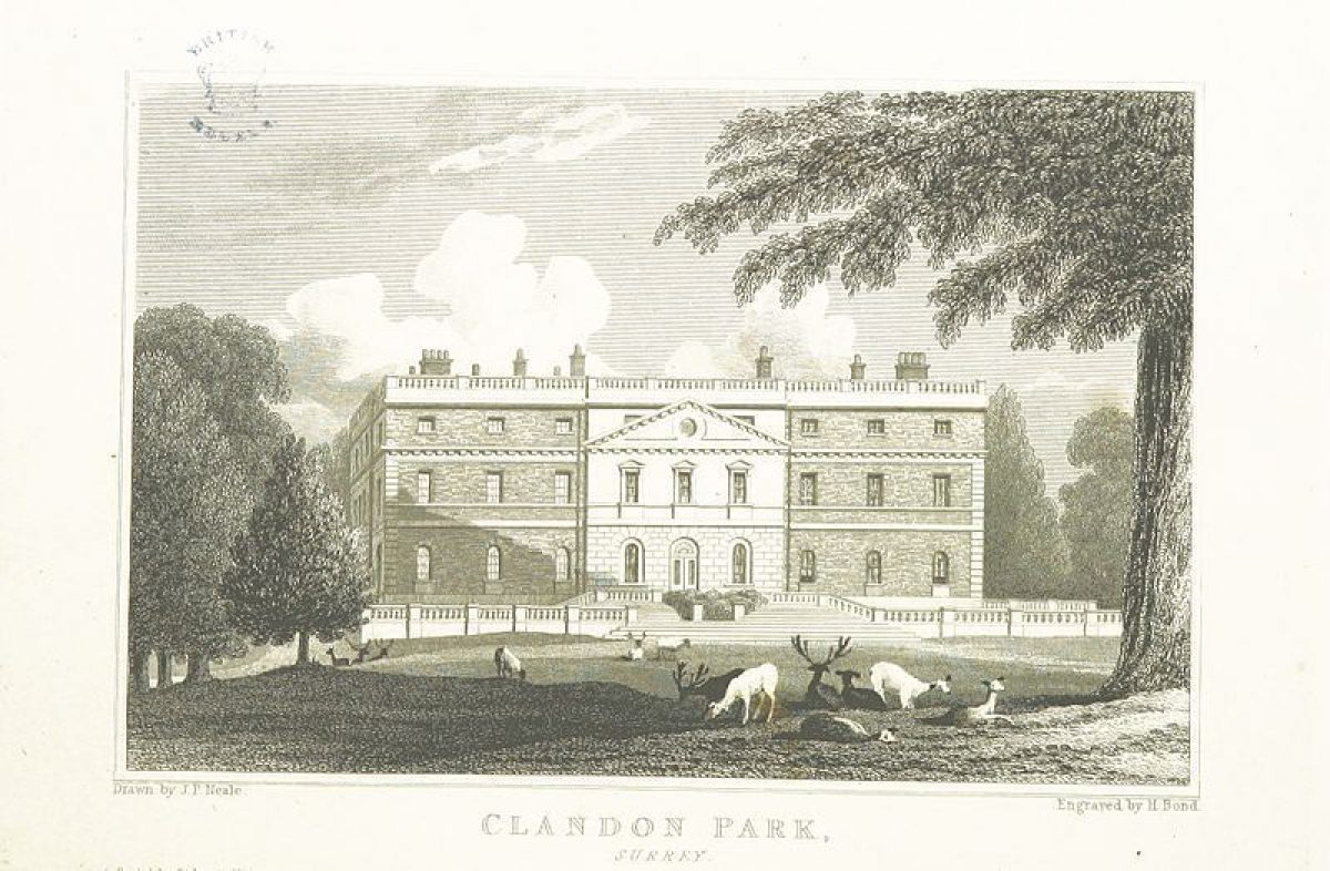 In 1780 small parcels of land were sold to pay off debts but improvements were continued by the fourth Baron (created Earl of Onslow) into the early years of the C19. George, the first Earl, died in 1814 and was succeeded by his son Tom, second Earl of Onslow. He demolished the old stables to the north of the house in 1814. The second Earl died in 1827 and was succeeded by his son Arthur George, third Earl. He abandoned Clandon and lived at nearby Clandon Regis and later in Richmond. The house and garden were neglected during this period (1827-70).
