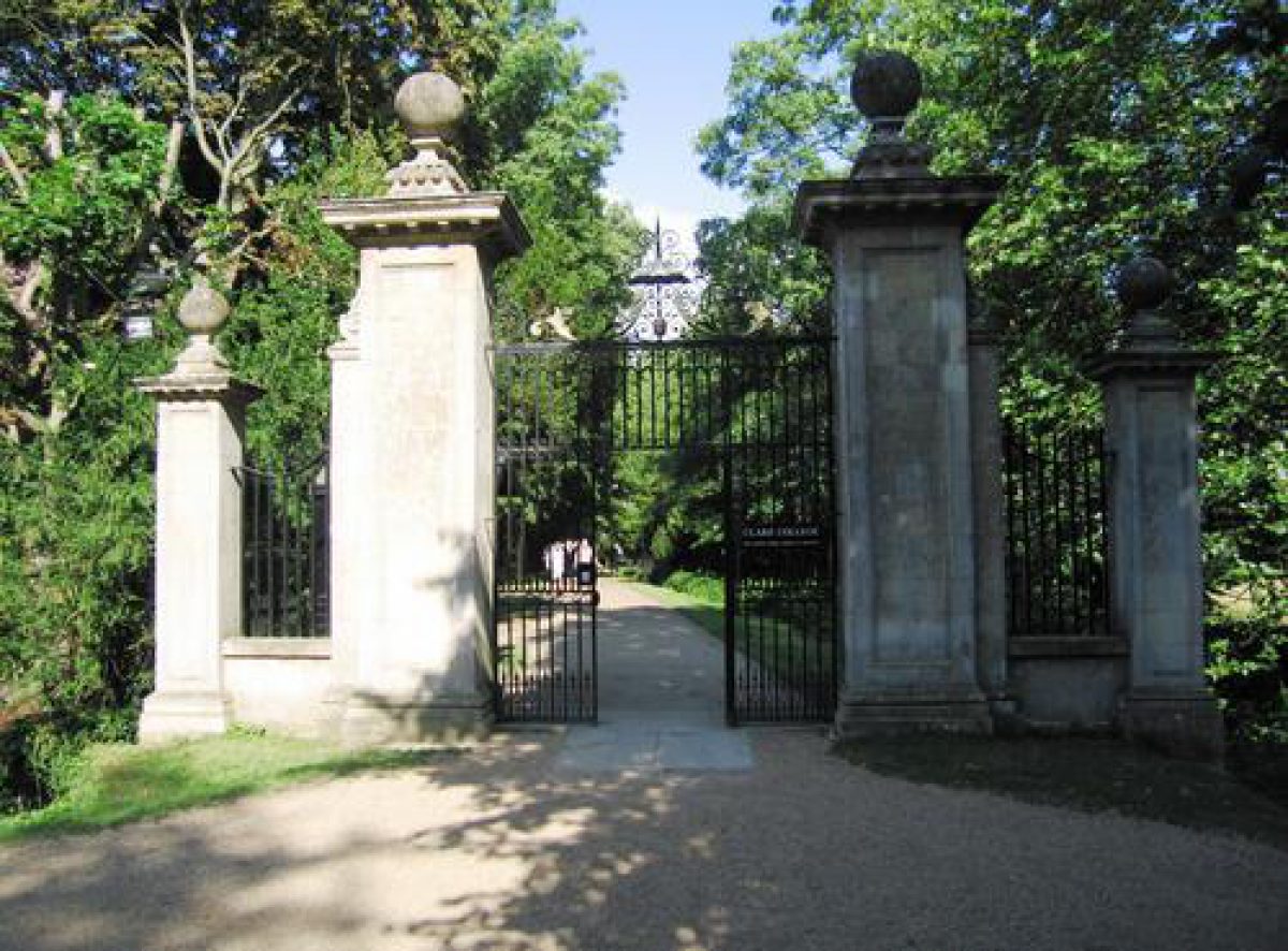 The site is on flat ground surrounded by drainage ditches.The gardens of Clare College consists of two 'courts': Old Court which sits to the east of the Cam, and Memorial Court which is located to the west of Queens Road. The Gardens were substantially re-designed in 1947 by E H Willmer following a period of neglect during the Second World War but many features survived the alterations.