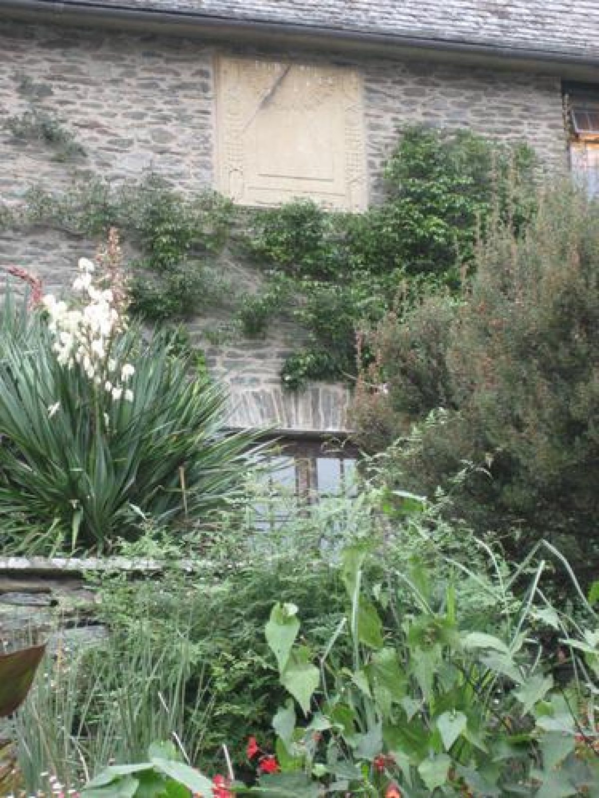 Described by Country Life in 1930 as an important example of a modern country house, Coleton Fishacre (listed grade II) was built in 1925-6 to the design of Oswald Milne, a pupil of Edwin Lutyens. The house is low and set into the hillside for shelter, and through its plan and details harmonises with its setting. Constructed of slate rubble quarried on site under a Delabole slate roof, the house has an asymmetrical Y plan with south-west and north-east wings enclosing the carriage court, and south-west and a longer east wing enclosing terraces to the south. The east wing has a semicircular two-storey bay with a conical roof, while the south-west wing has a carved stone panel sundial by H W Palliser at first-floor level. There is a single-storey and attic wing set back at the east end of the east wing which has an open loggia at ground-floor level. The entrance façade has a two-storey three-sided porch with a hipped roof set in the obtuse angle between the north-east and south-west wings. Vernacular inspired Arts and Crafts details appear throughout the house, and the library contains an overmantel wind map painted by Spencer Hoffman in 1927 which shows the site within its coastal setting.