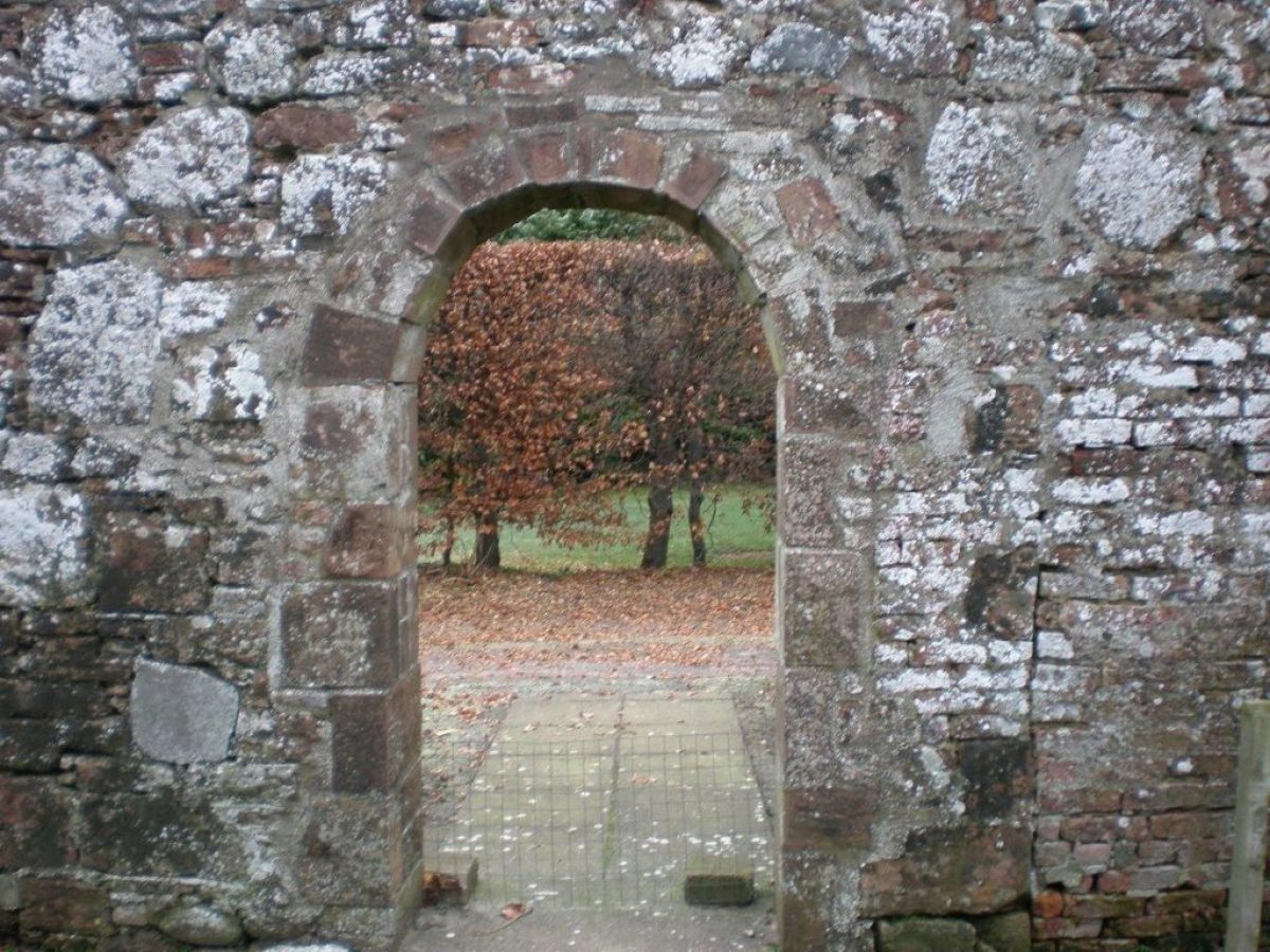 - Description: A circular summerhouse centrally placed along the west wall of the garden was built circa 1800. Constructed of red ashlar with a door into the garden, it is now roofless.