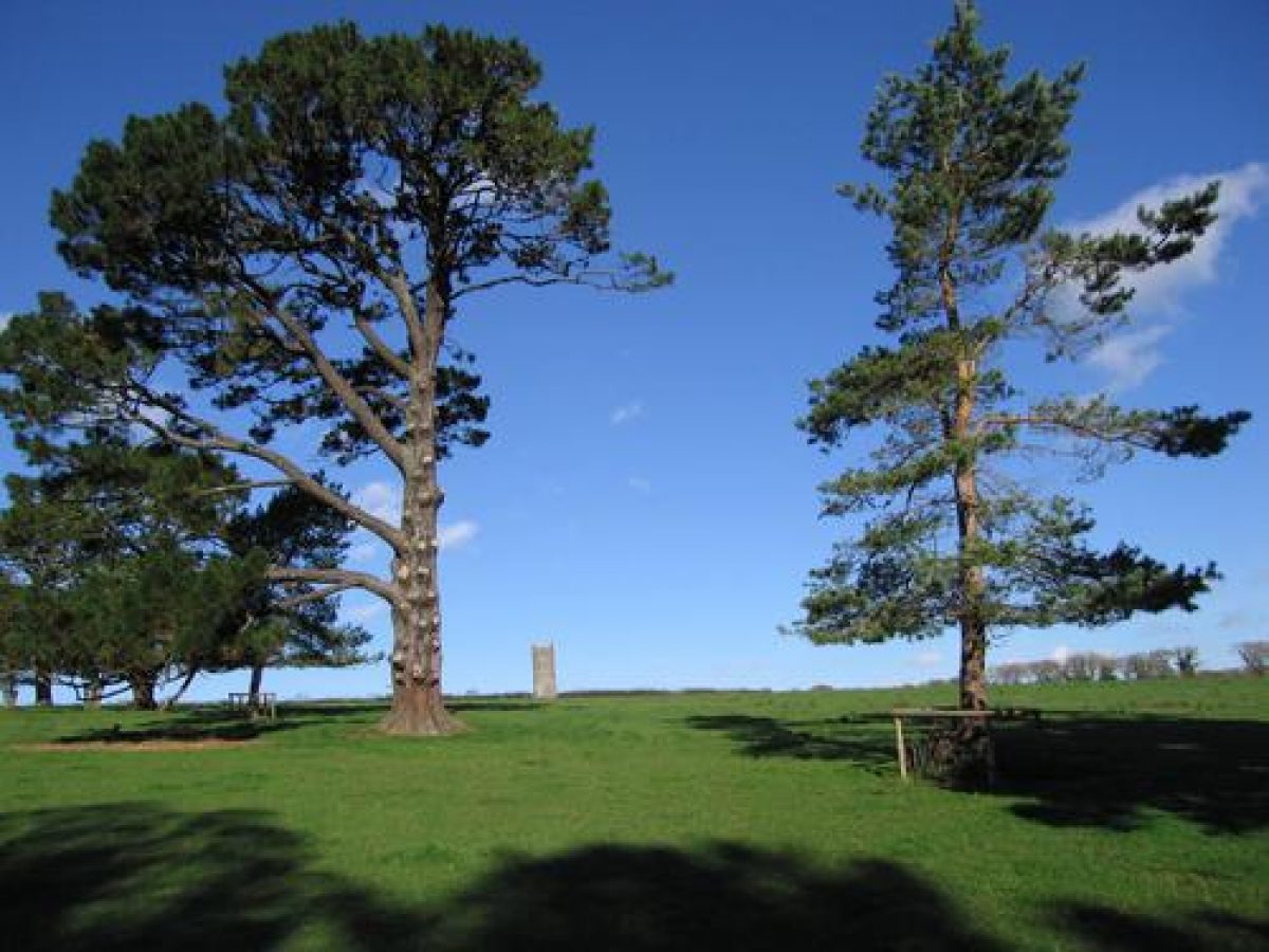 The park is situated principally to the north-east of the house, with a further area of ornamental paddock to the south. The park comprises a single pasture enclosure on a south- and south-east-facing slope. The western boundary of the enclosure is marked by a single row of mature Scots pines which are planted parallel to the track which follows the course of the medieval north approach, while the northern and eastern boundaries are formed by Cornish hedges. Adjacent to the northern boundary, at the highest point of the park c 320m north of the house, stands the Prospect Tower (listed grade II*).