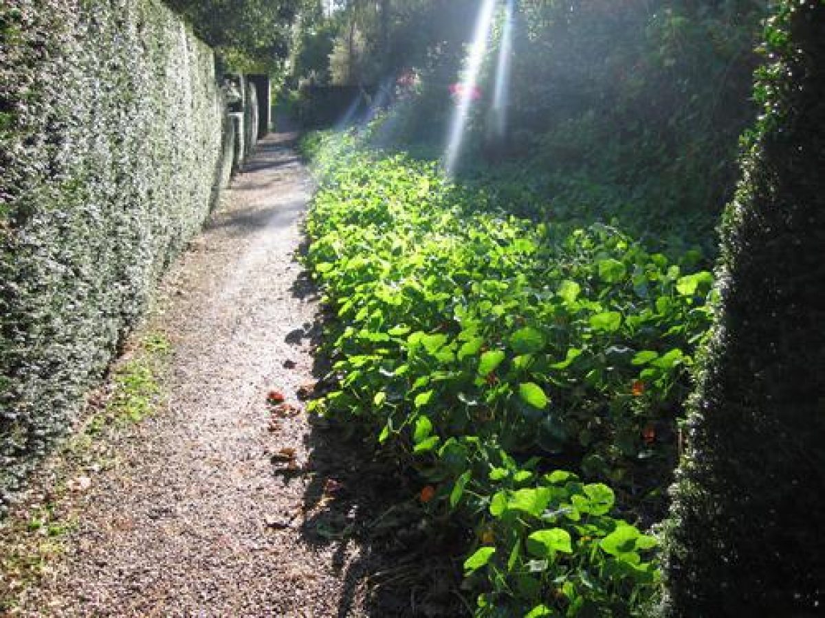 No kitchen garden survives at Cotehele, but the ramped beds in Mrs Julian's Garden c 50m west of the house were used in the early or mid C19 for growing vegetables. The area which now comprises the Upper Garden, Cut-Flower Garden, and Mrs Julian's Garden, in 1731 formed part of the 'Old Orchard', a large rectangular enclosure to the west of the house (Doidge). The southern half of this enclosure remains an orchard today, with mixed standard fruit trees planted in grass. A large rectangular depression in the orchard c 80m south-west of the house is of uncertain age and purpose. The orchard is enclosed to the west by a C19 stone wall c 3m high (listed grade II), while to the south it is bounded by further walls and a range of mid or late C19 two-storey cottages and cart sheds (listed grade II). The east boundary is formed by further walls and the late C19 coach house (listed grade II).