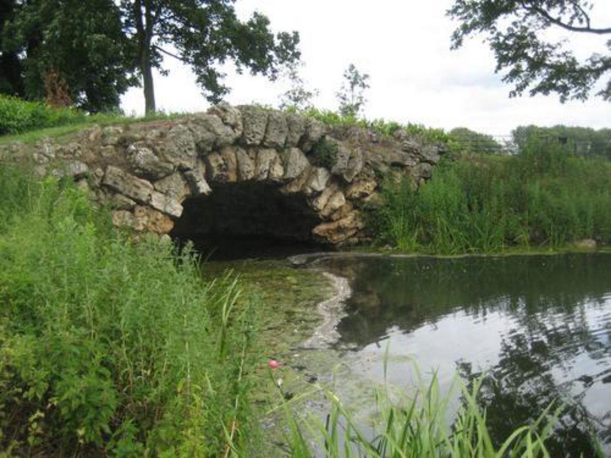 The sloping ground to the south-east of the Hall was carefully moulded under Woods' directions of the 1760s. A path through Shrubbery Walk, a band of ornamental planting east of the Hall, leads along the west wall of the kitchen gardens down to the Upper Fish Pond. At the northern tip of the water is an artificial mound, below which stands the rusticated arched boathouse (Woods 1762(3, listed grade II), built of limestone rubble and boulders. The small island in the lake is part of Woods' design. The north-east finger of the lake is joined by a rocky cascade (Woods 1760s) to the long, narrow, Middle Fish Pond below. The bridge is a late C20 replacement. The Middle Pond in turn links with the Lower Fish Pond which curves round into the flat area of the park and ends in the Basin Pond.