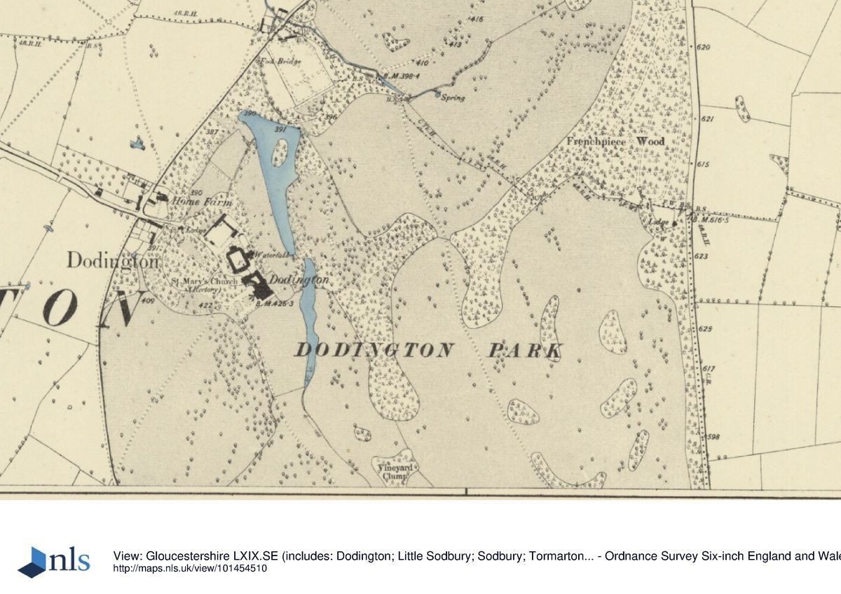 'The power of contrast is seldom more forcibly exhibited than to the traveller who quits the uninteresting adjacent country, and enters the domain of Dodington. This lovely territory would, indeed, seem to stand by itself, quite unconnected with the surrounding scenery'. (Brewer 1825-7)