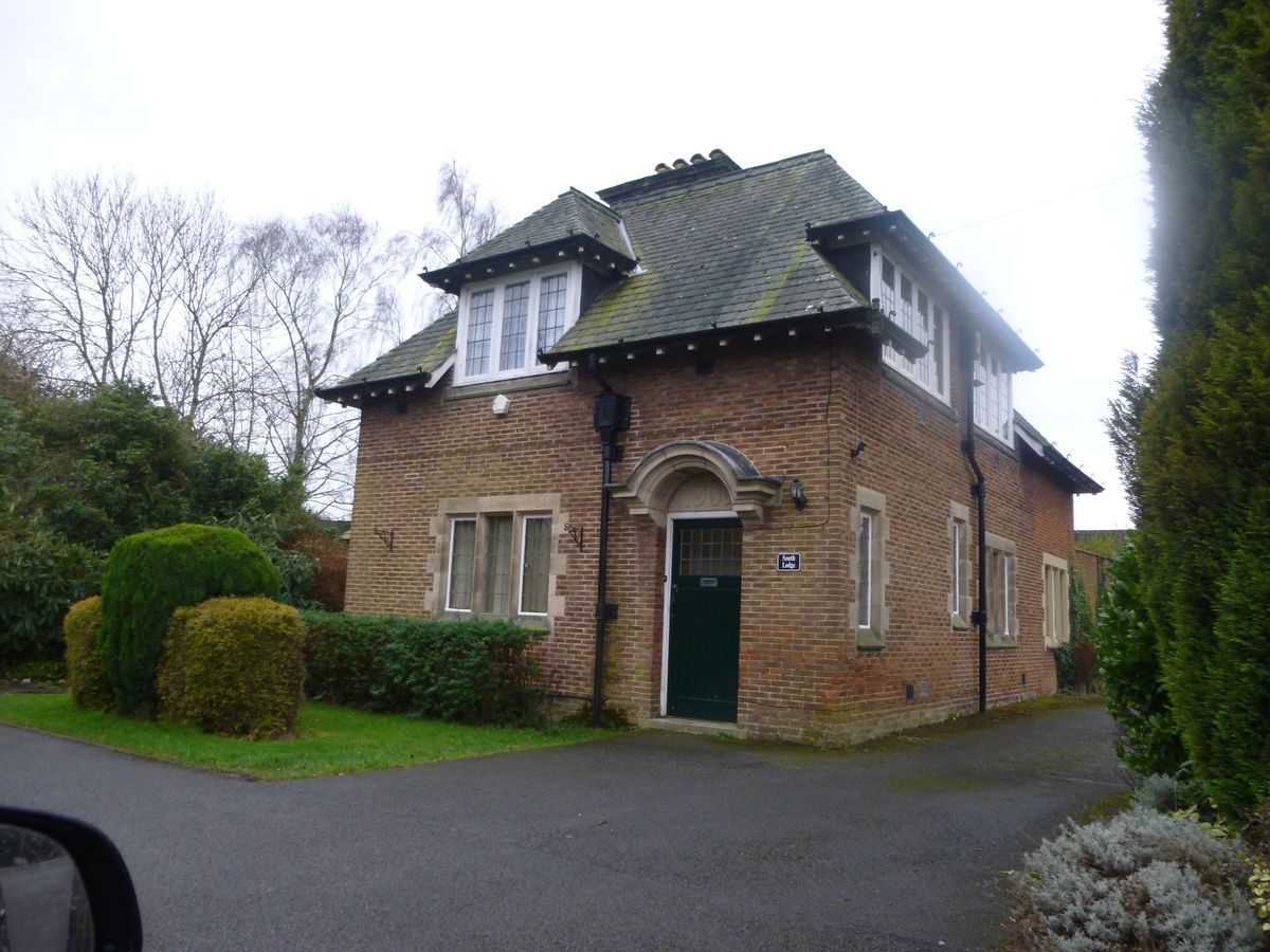 Dunchurch Lodge (listed grade II*) stands on a level terrace, below and to the south-east of which the ground falls sharply revealing views across the gardens and surrounding country. The present Queen Anne Revival mansion was built to the designs of Gilbert Fraser, a Liverpool architect, in 1906-7, and is constructed in red brick with Storeton stone dressings (The Studio 1911). The building is of two storeys, with dormer windows set in a hipped slate roof, and is roughly L-shaped on plan. The east or entrance facade is symmetrical, with a pair of full-height canted bay windows flanking a single-storey stone porte-cochère with carved Renaissance-style decoration. The garden or south facade has three similar symmetrically placed bay windows, with a garden door and staircase window set in an ornamented stone panel between the central and eastern bays. To the west of the house there is a recessed court, originally enclosed to the south by the house and to the north by the service wing and the wall of the kitchen garden, today replaced by late C20 office buildings. The single-storey service quarters lie to the north of the main house. A single-storey, red-brick, stone and slate-roofed dining room was built in 1950 to the north-east of the original house, but in a style closely modelled on the original building.