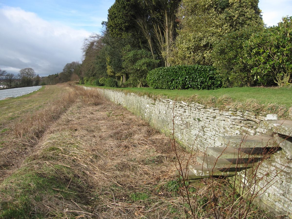 The earliest Ordnance Survey maps, the 6-inch and 25-inch maps published in 1865 show considerable detail both within and around the walled garden. Two distinct shrub-lined paths meeting in a circular area divide the interior of the garden into four sectors, all of which have regular planting. Along the outer west face of the walled garden a narrow ‘slip' garden is shown, possibly with a glass house at the north end and two rectangular planted beds to the south. The remains of plant supports can still be seen on the outer west wall of the walled garden where the slip garden was situated. Later editions of the Ordnance Survey maps of the same scale, published in 1902 and 1922, show no detail at all within the walled garden, although the slip garden is still evident. This may not imply that the walled garden fell out of use, since an aerial photograph of 1967 belonging to the present owners of Duntrune House, shows the walled garden in full production as a market garden. The east-west path of the Ordnance Survey map can still be seen. These early OS maps also show roundels and groups of trees as well as individual trees in the park which slopes south from the front of the mansion house, which probably were planted to enhance the park. A single group of trees still survives among the cultivation.