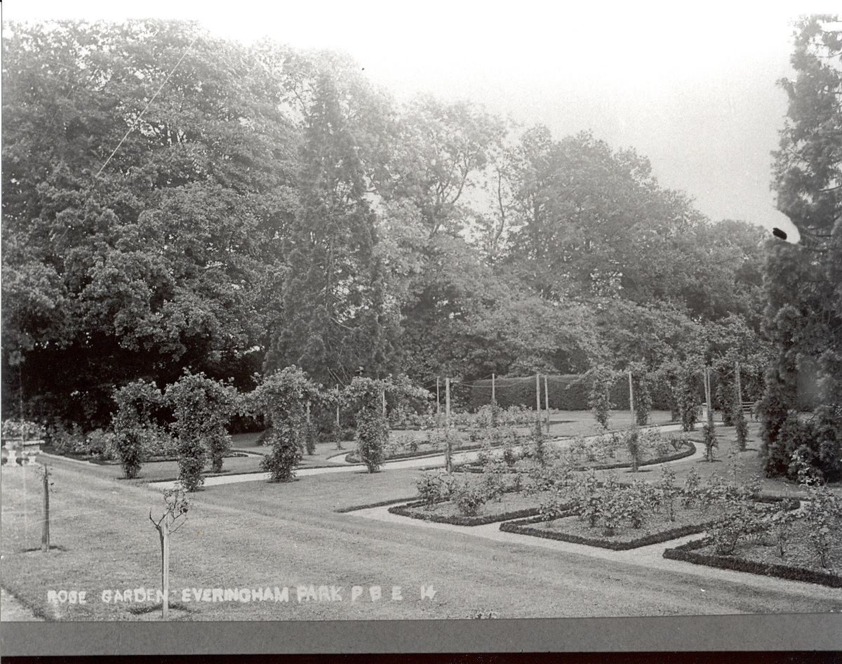The pleasure gardens to the south of the walled kitchen garden appear to have been laid out in two stages. A straight path or avenue led though the centre of the gardens, from the lake to the kitchen garden, and the right-hand section of the gardens had been laid out with paths by 1845. (Wickham, ‘Everingham', 10 refering to a plan of 1845 ref. HHC, U DDEV/70/26) The left-hand section of the pleasure gardens was probably laid out with a wide path going south-north with an open area in the centre by 1867. At this date a small classical oratory was built at the western end of a smaller path running at right angles. By the 1890s there was a rose garden with four Wellingtonias in the pleasure gardens and a lime avenue with perennial borders led to the kitchen garden. (Wickham, ‘Everingham', 11 and Appendix 1)
