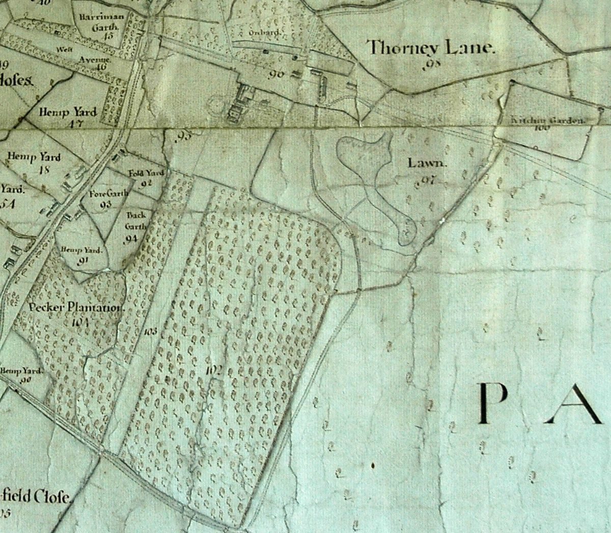 1. Plantations were made in the park south of the hall. Pecker plantation on left was being planted with ‘Scotch furs' in 1740.