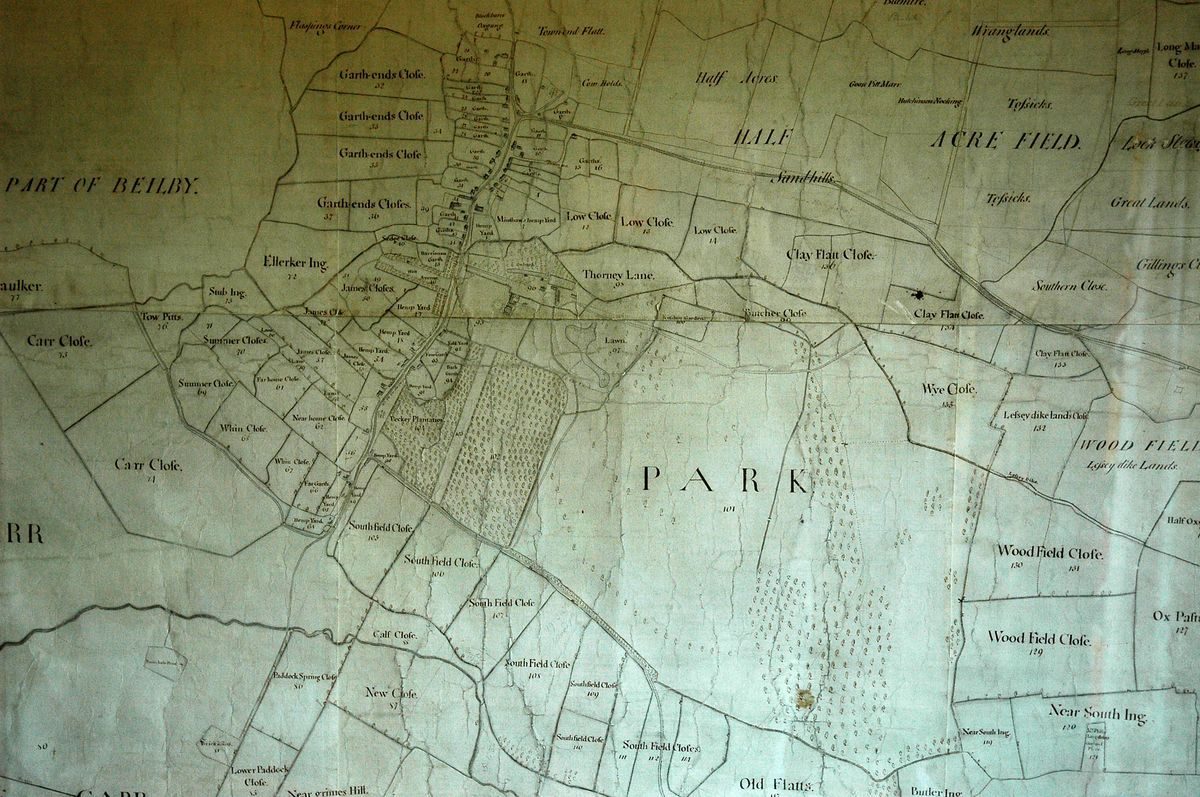 The Everingham family had a deer park at Everingham in the 13th century. It probably continued throughout the Middle Ages for a park is shown at Everingham on Saxton's map of the East Riding published in 1577.