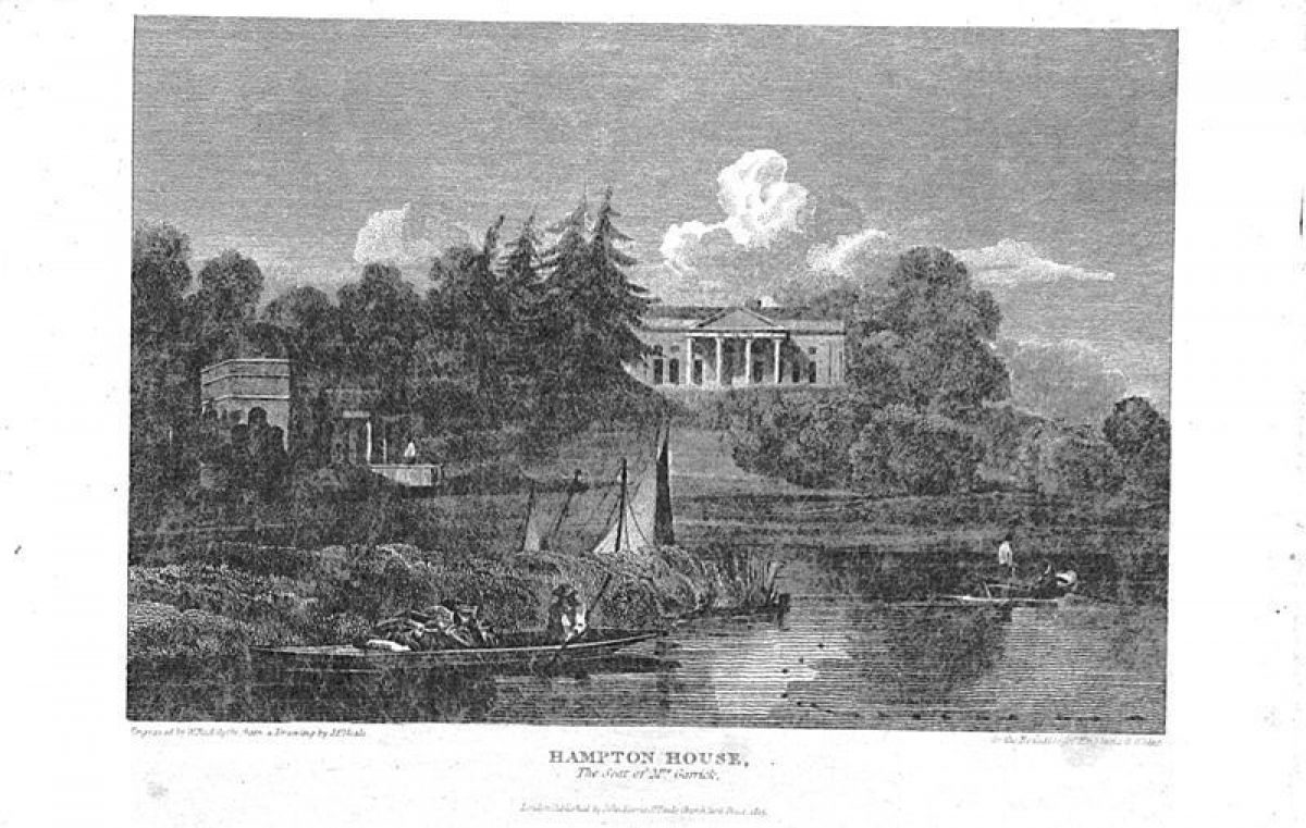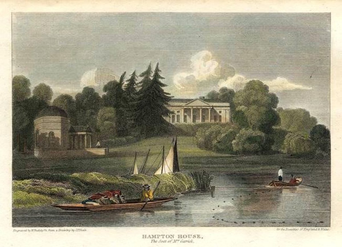 The original Hampton House and grounds were acquired by David Garrick between 1753 and 1754. The house was, and remains, separated from the southern, riverside part of the site by Hampton Court Road. By 1755 Garrick had begun to build Shakespeare's Temple on the riverside part of the grounds; the architect is thought to be have been Lancelot Brown (J Garden Hist 1986), who between 1756 and 1757 advised Garrick on the small-scale landscape development, including the making of a tunnel beneath the road to connect the main northern garden with the riverside garden (Stroud 1975). Robert Adam (1728-92), who worked closely with Garrick on his theatre in Drury Lane, added a new front to the house and constructed the orangery (J Garden Hist 1986). After Garrick died in 1779 his widow, Eva, continued to live at the Villa until her death in 1822.