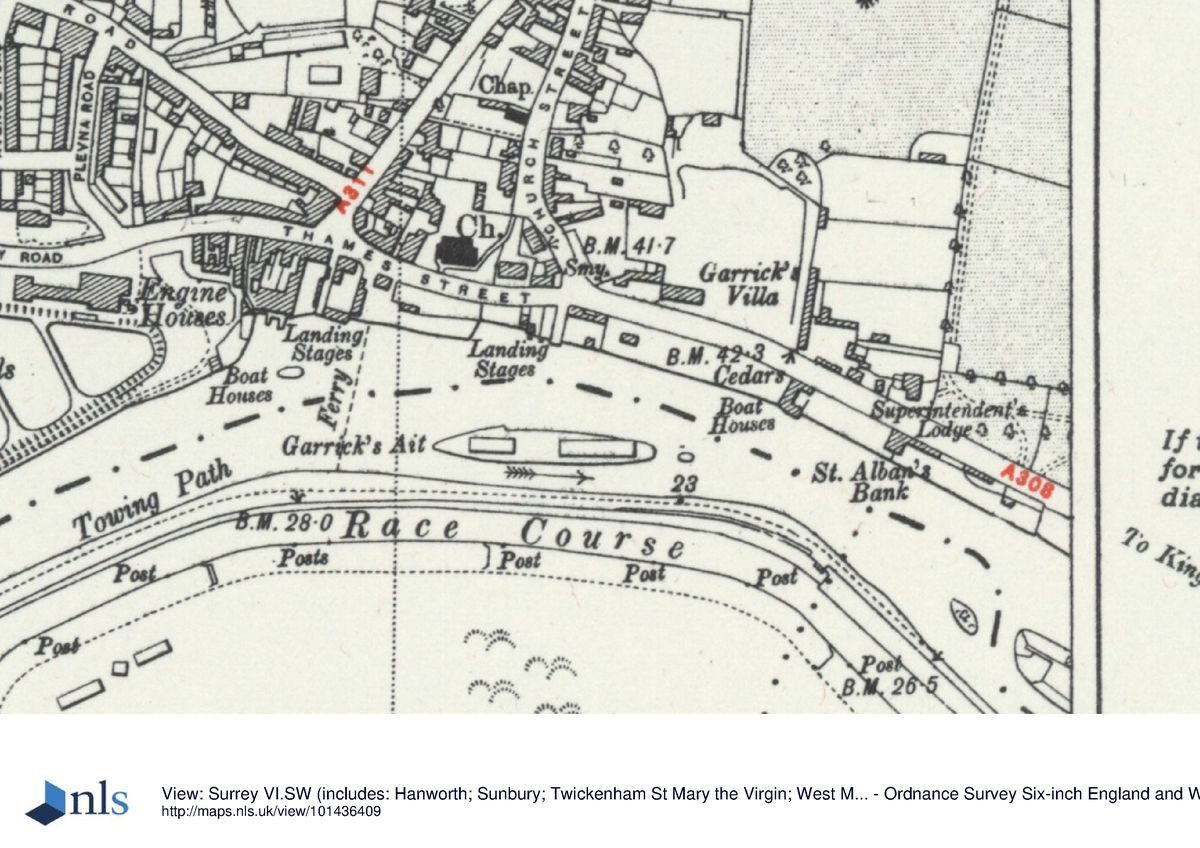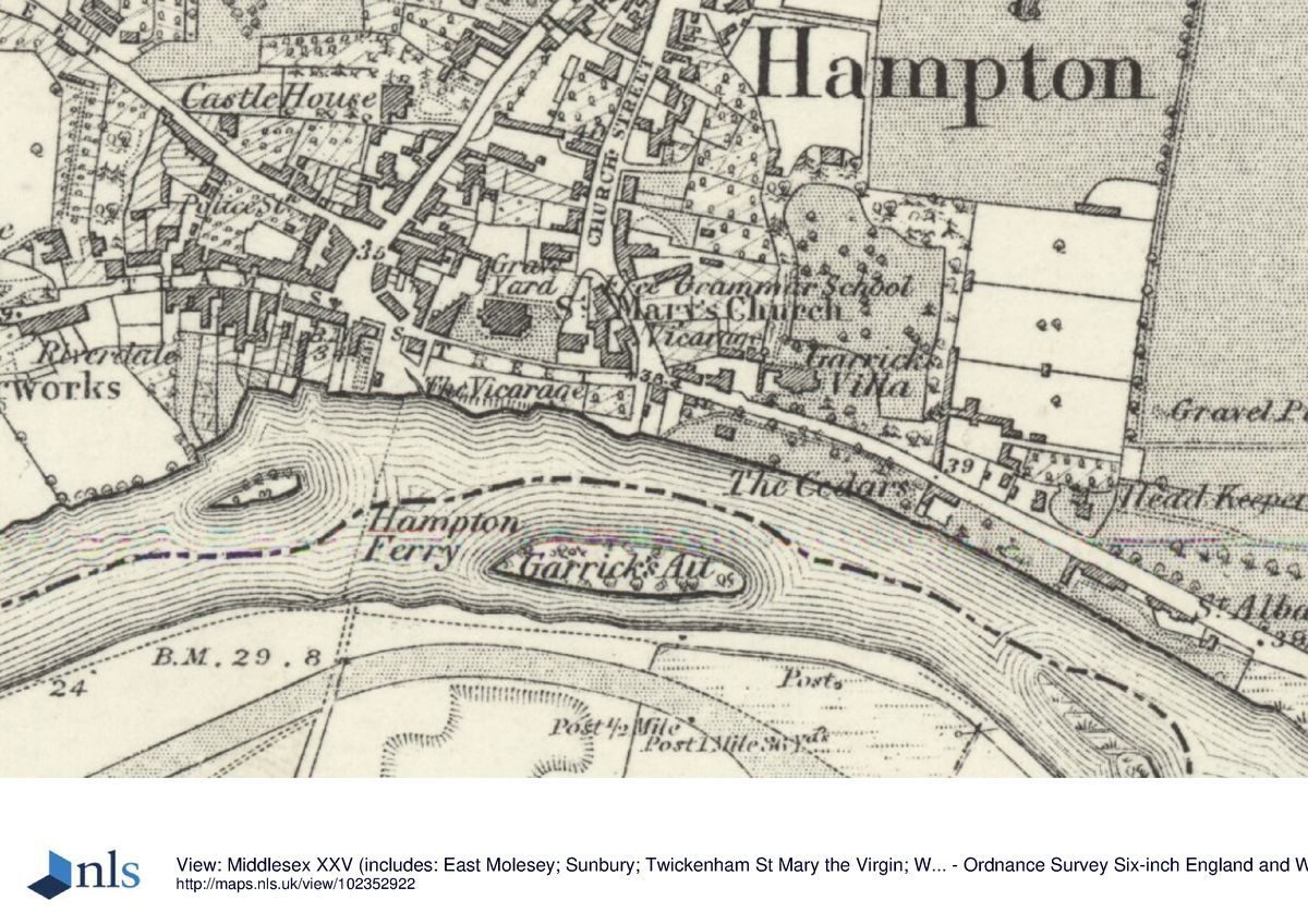 Garrick's Villa is situated on the north bank of the Thames. The site is largely level.The following is from the Register of Parks and Gardens of Special Historic Interest. For the most up-to-date Register entry, please visit the The National Heritage List for England (NHLE):