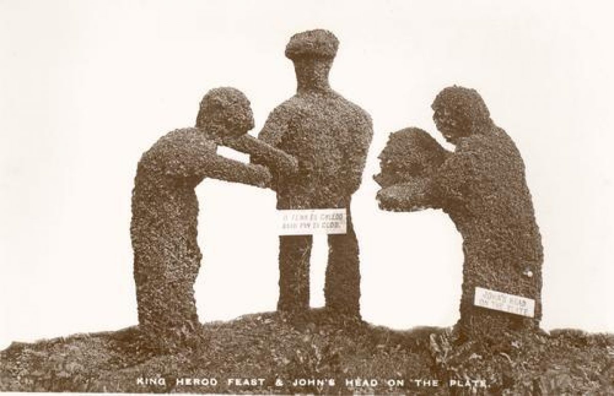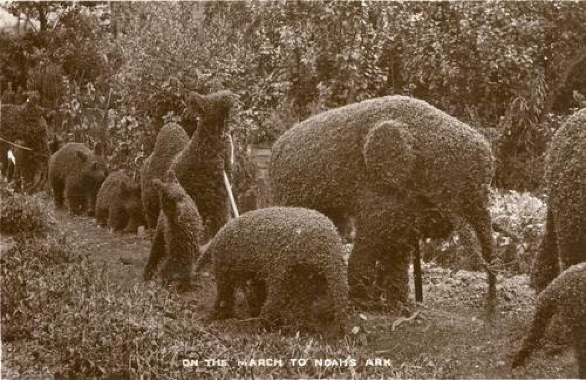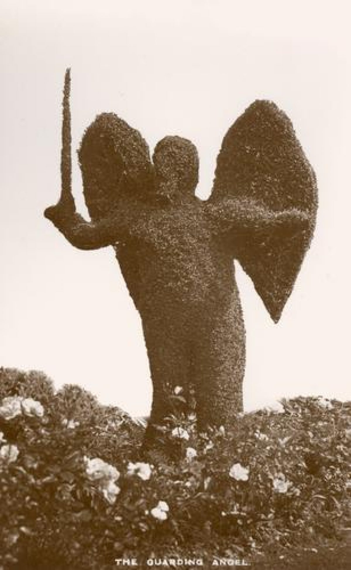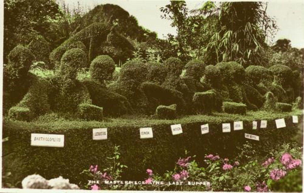 Glyn Aur was a cottage garden with extensive topiary, much of it representing biblical figures and events. It was sometimes known as the Garden of Eden. The garden was open in its heyday but is now sadly lost. There are, however, a number of old postcards based on photographs taken by the then owner, which show the full glory of the topiary.