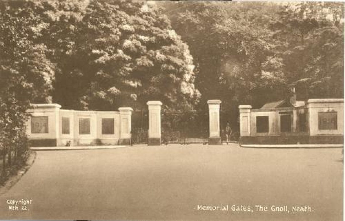 - Reference: War Memorial Gates, Gnoll Avenue