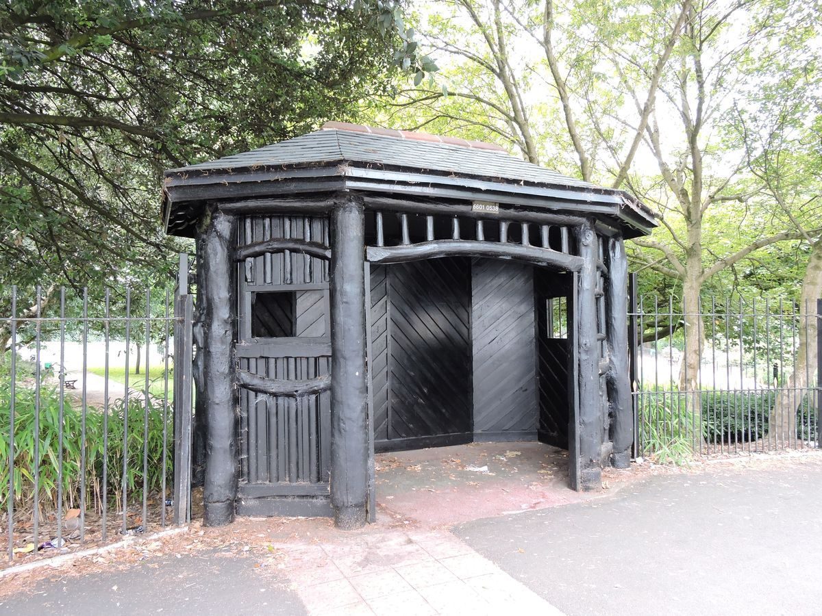 - Description: Rustic shelter at corner of Corporation Road and Holmesdale Street.