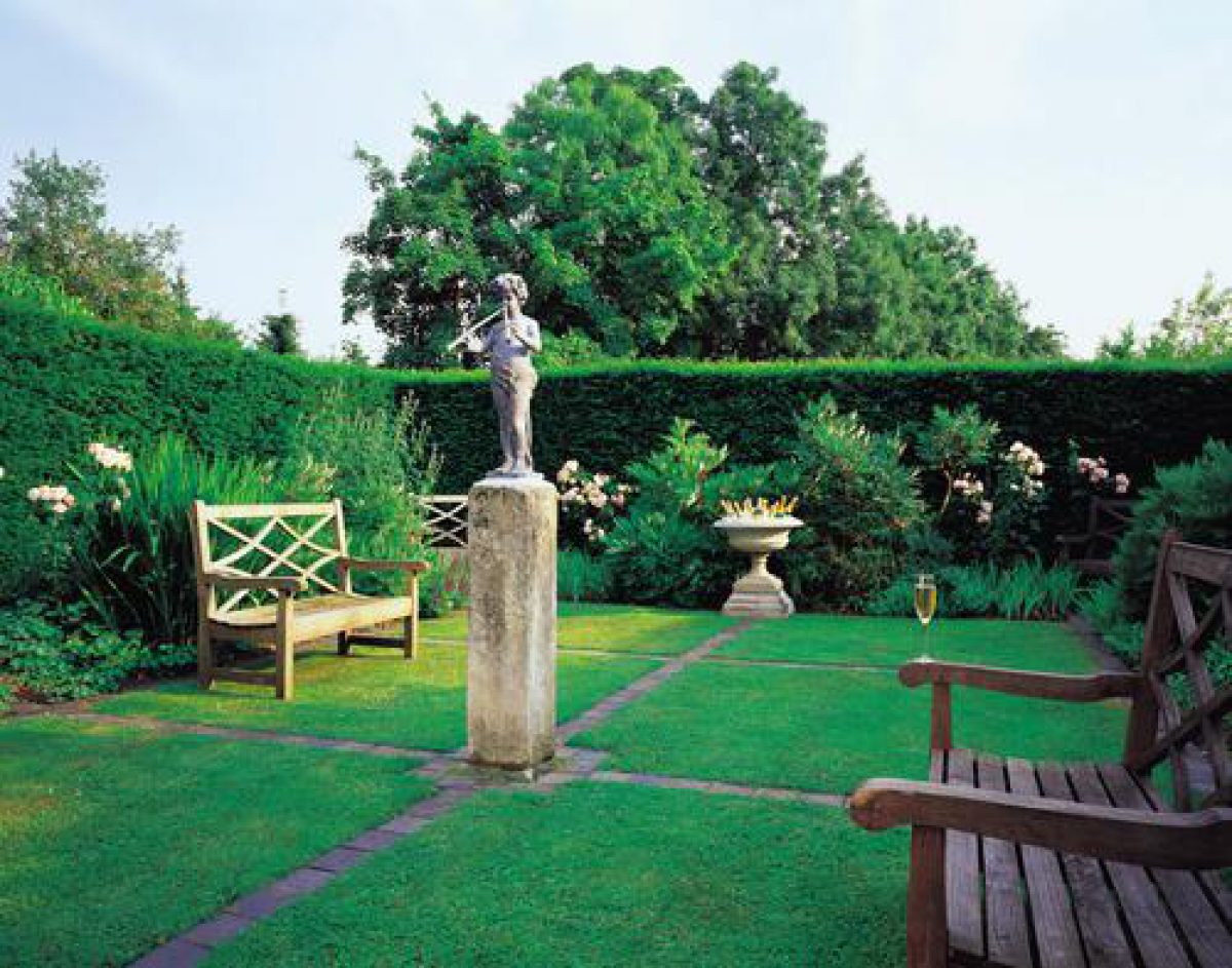The partly walled kitchen garden, now grassed over, lies to the south of the house. It was enclosed by high brick walls on the south, east, and west and a row of conical yews to the north. In the 1970s the eastern two-thirds were cleared and put down to grass, in which management they remain (2000), while the western third was developed for the Hotel Manager's house.